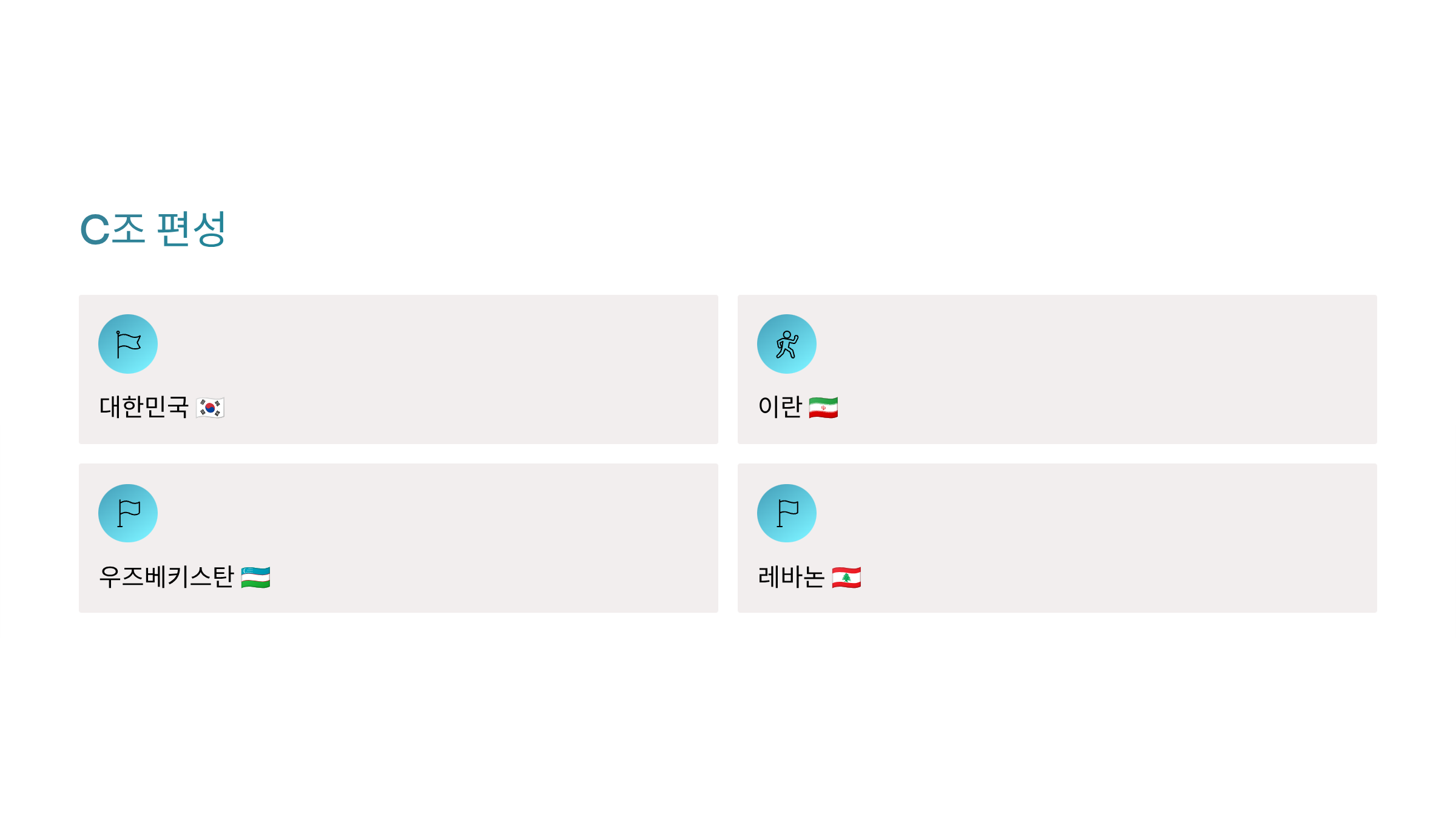 C조 팀: 대한민국, 이란, 우즈베키스탄, 레바논