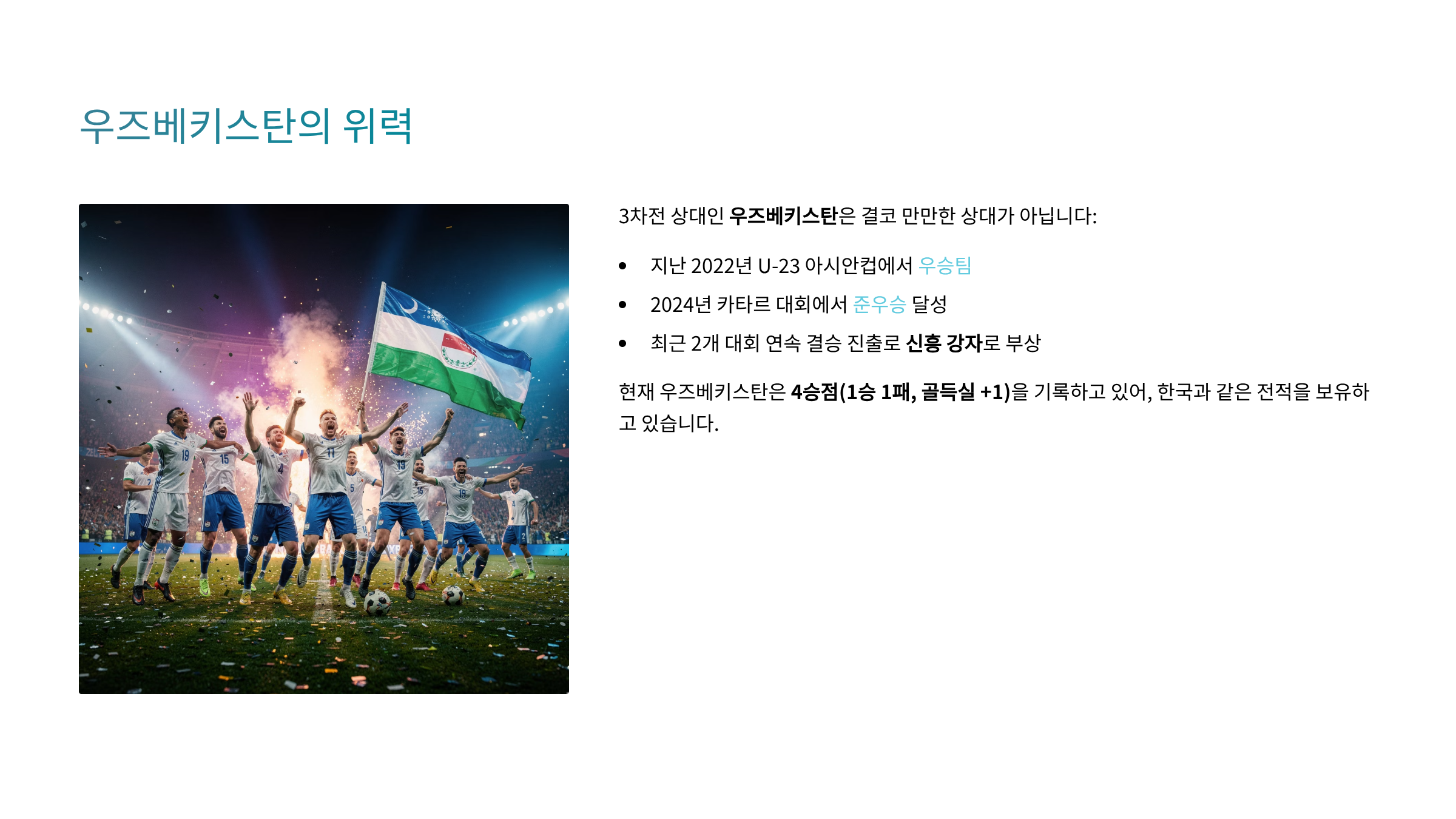 3차전 상대인 우즈베키스탄은 결코 만만한 상대가 아닙니다: