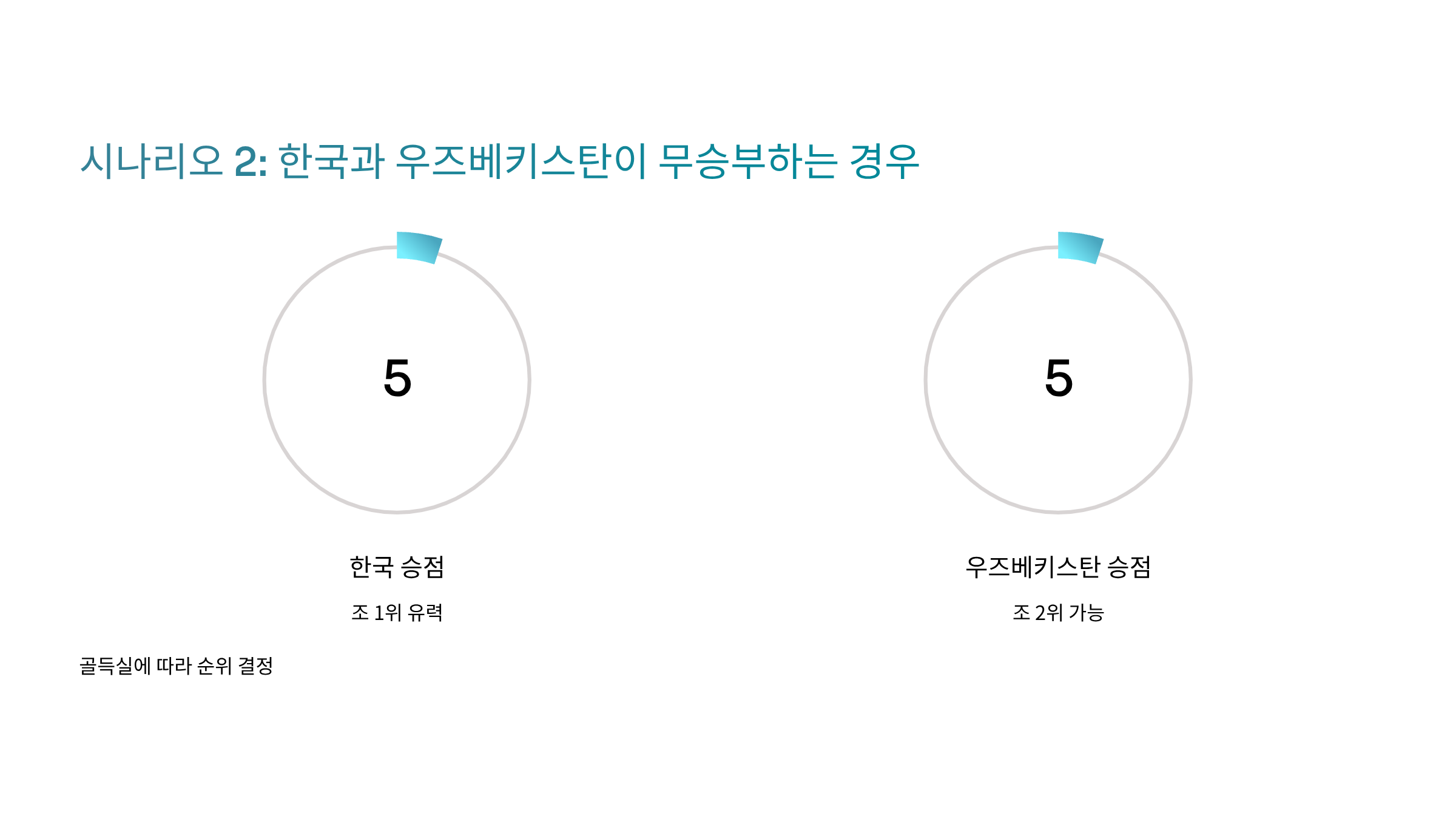 시나리오 2: 한국과 우즈베키스탄이 무승부하는 경우