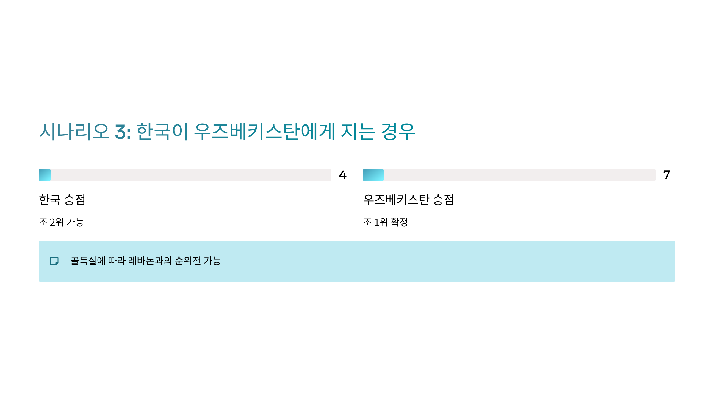 시나리오 3: 한국이 우즈베키스탄에게 지는 경우