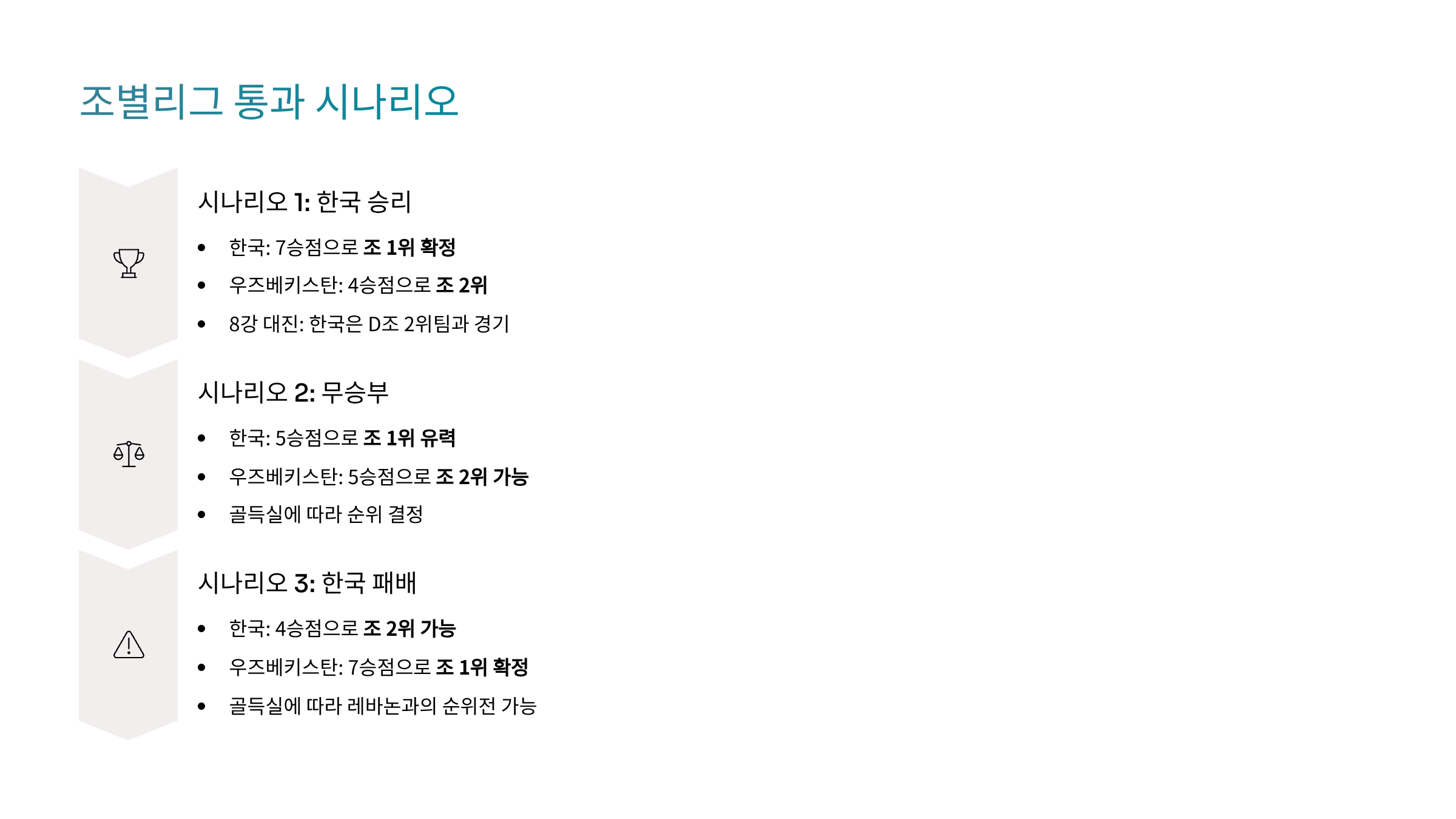 시나리오 1: 한국이 우즈베키스탄을 이기는 경우