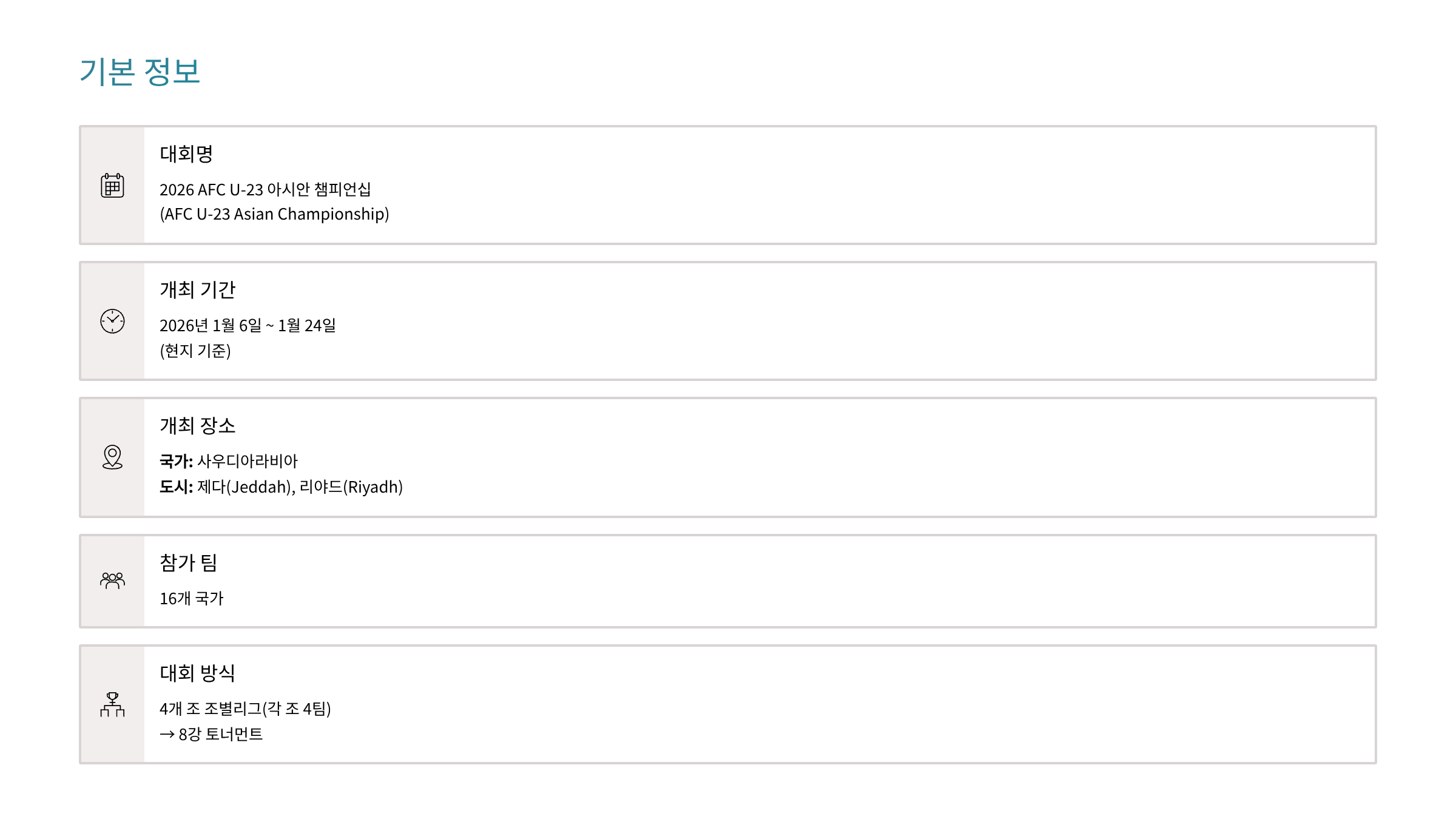 대회명: 2026 AFC U-23 아시안 챔피언십(AFC U-23 Asian Championship)