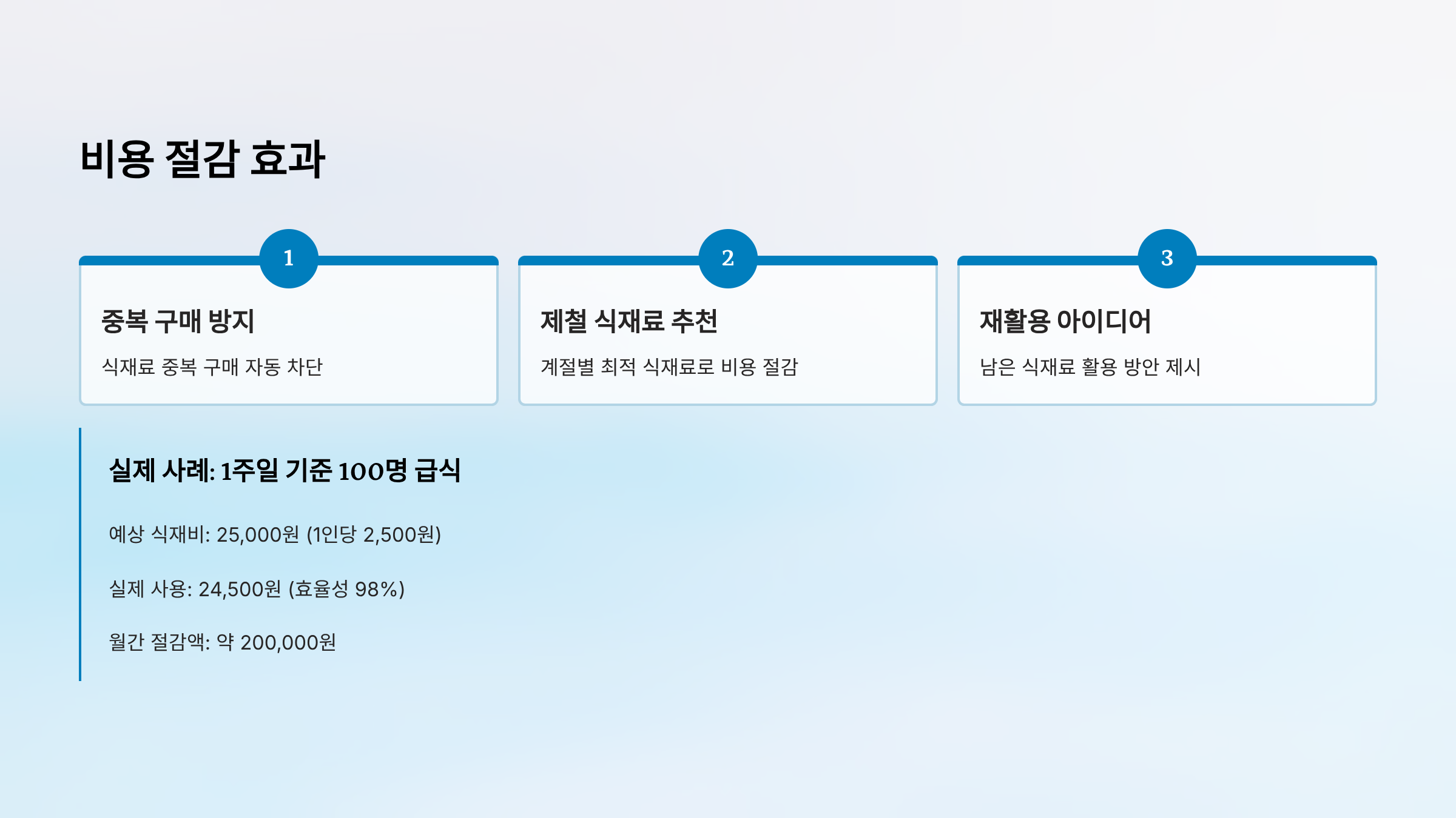 절감 효과: 연간 10~15% 식재비 절감 가능
