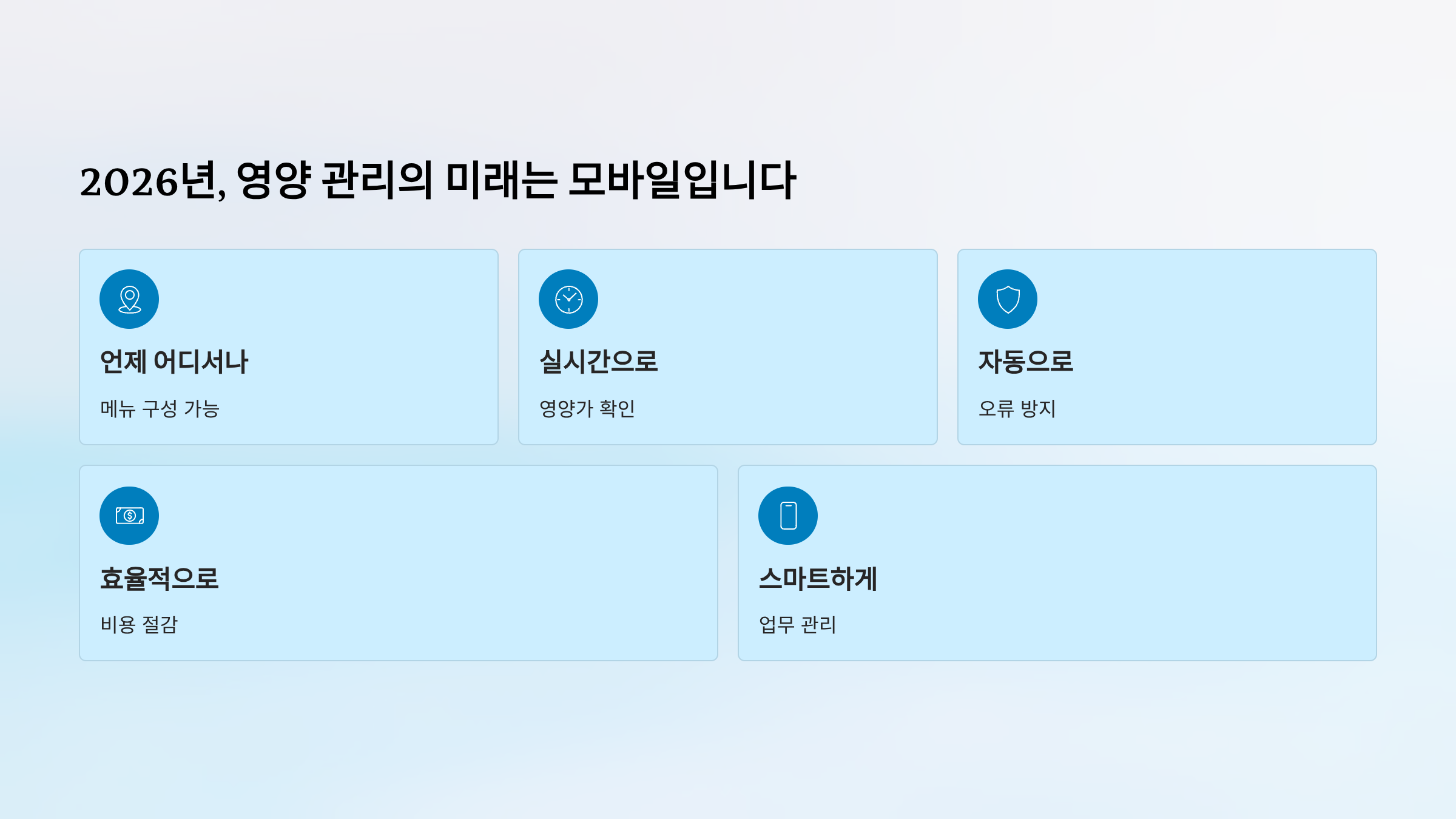 현장 영양사들의 복잡한 업무를 획기적으로 단순화하고, 더 중요한 영양 관리에 집중할 수 있도록 해주는 디지털 파트너입니다.