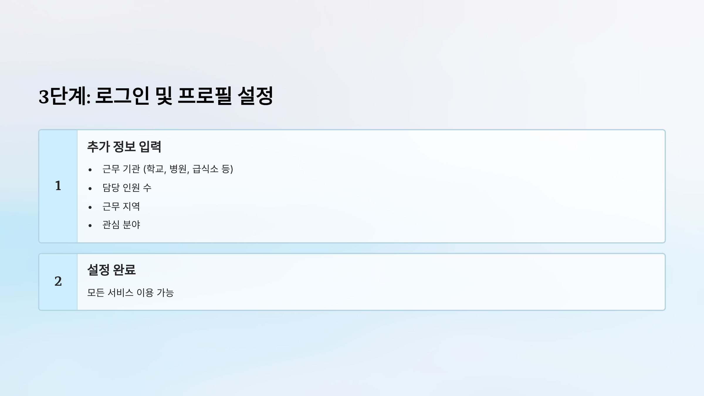 - 근무 기관 (학교, 병원, 급식소 등)
