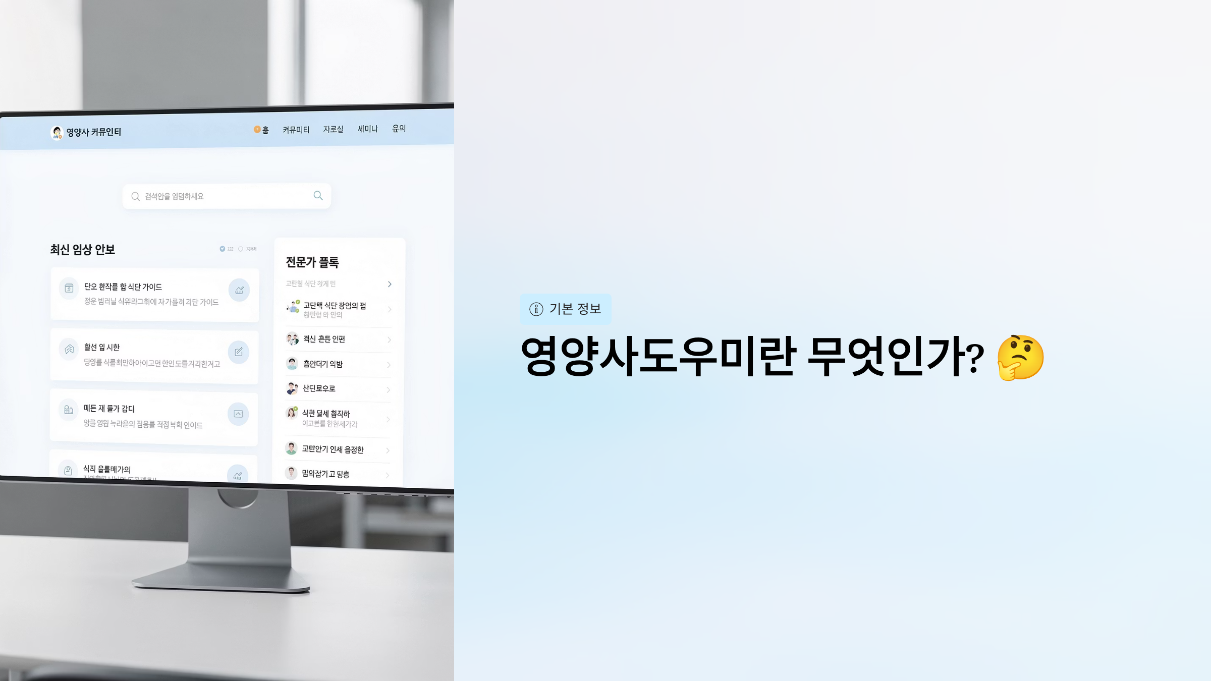 영양사도우미(Korea Dietetic Association Club)는 한국 영양사들을 위한 전문 커뮤니티 및 정보 공유 플랫폼입니다.