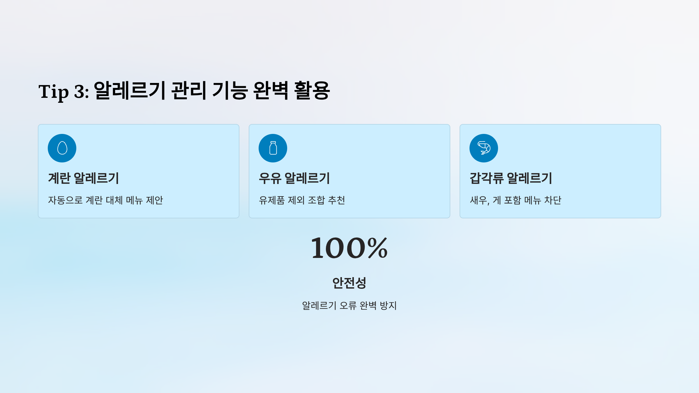 - 알레르기/질환별 필터링 기능 활용