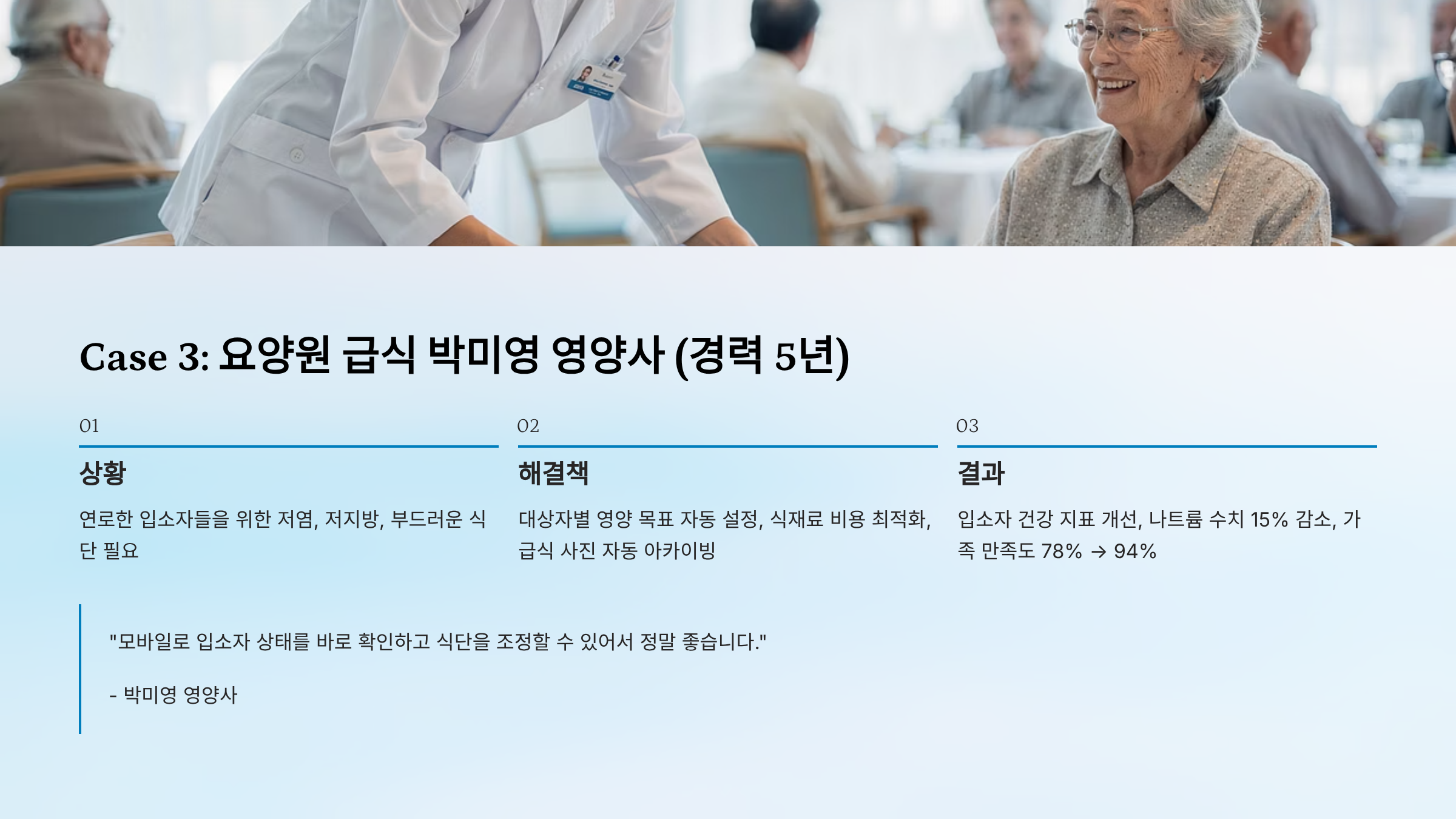 Case 3: 요양원 급식 박미영 영양사 (경력 5년)