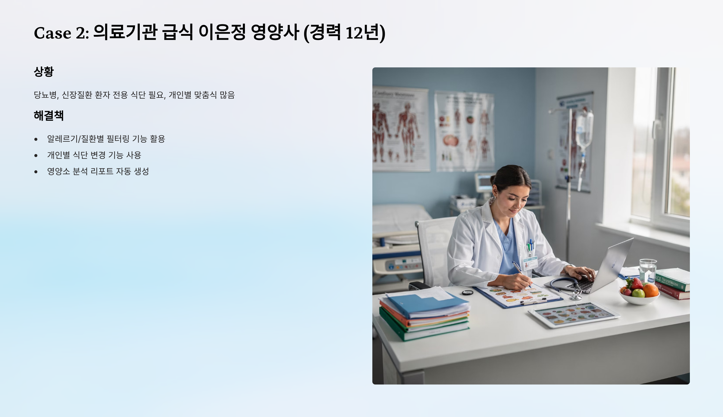 Case 2: 의료기관 급식 이은정 영양사 (경력 12년)