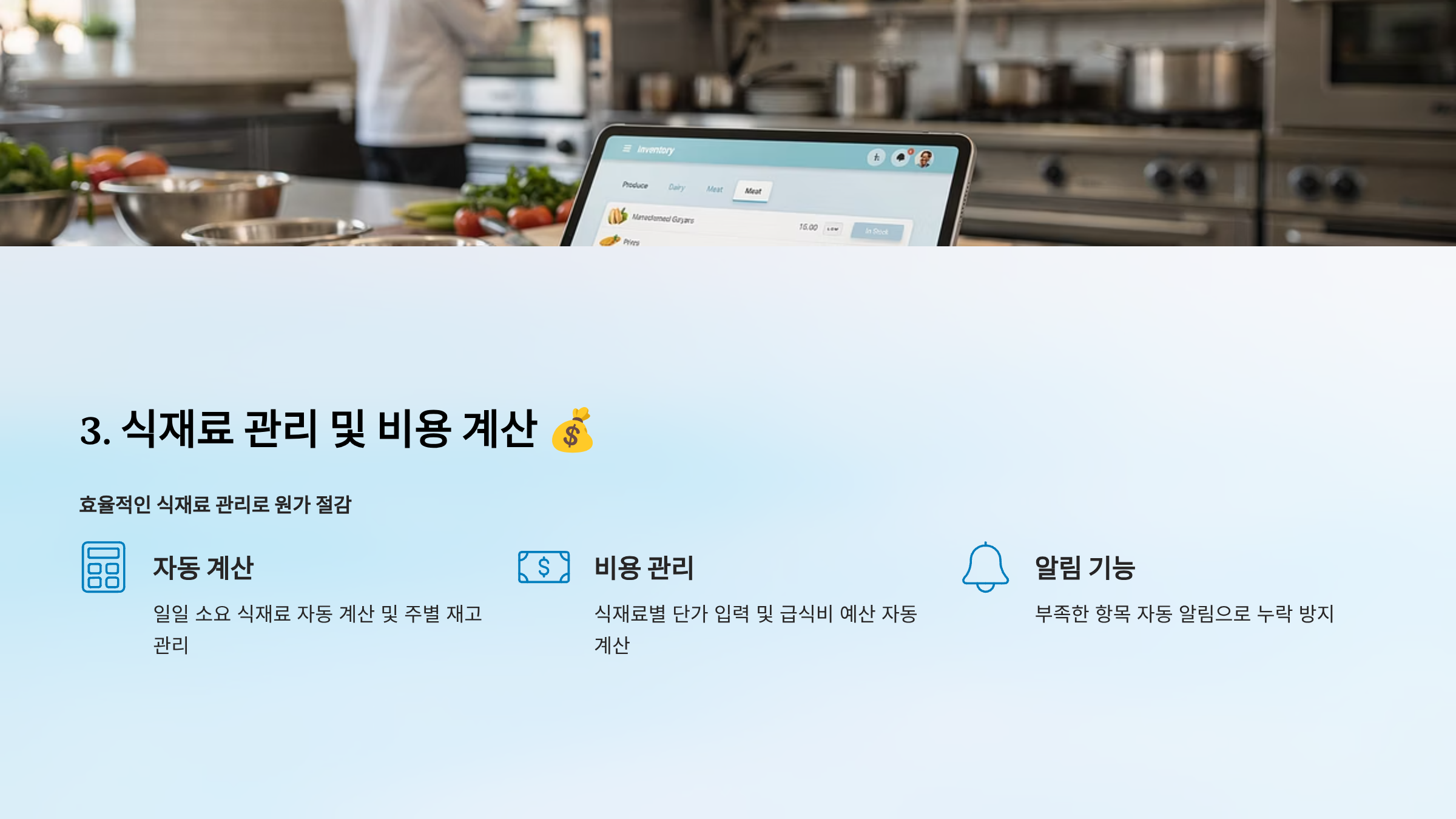 3. 식재료 관리 및 비용 계산 💰