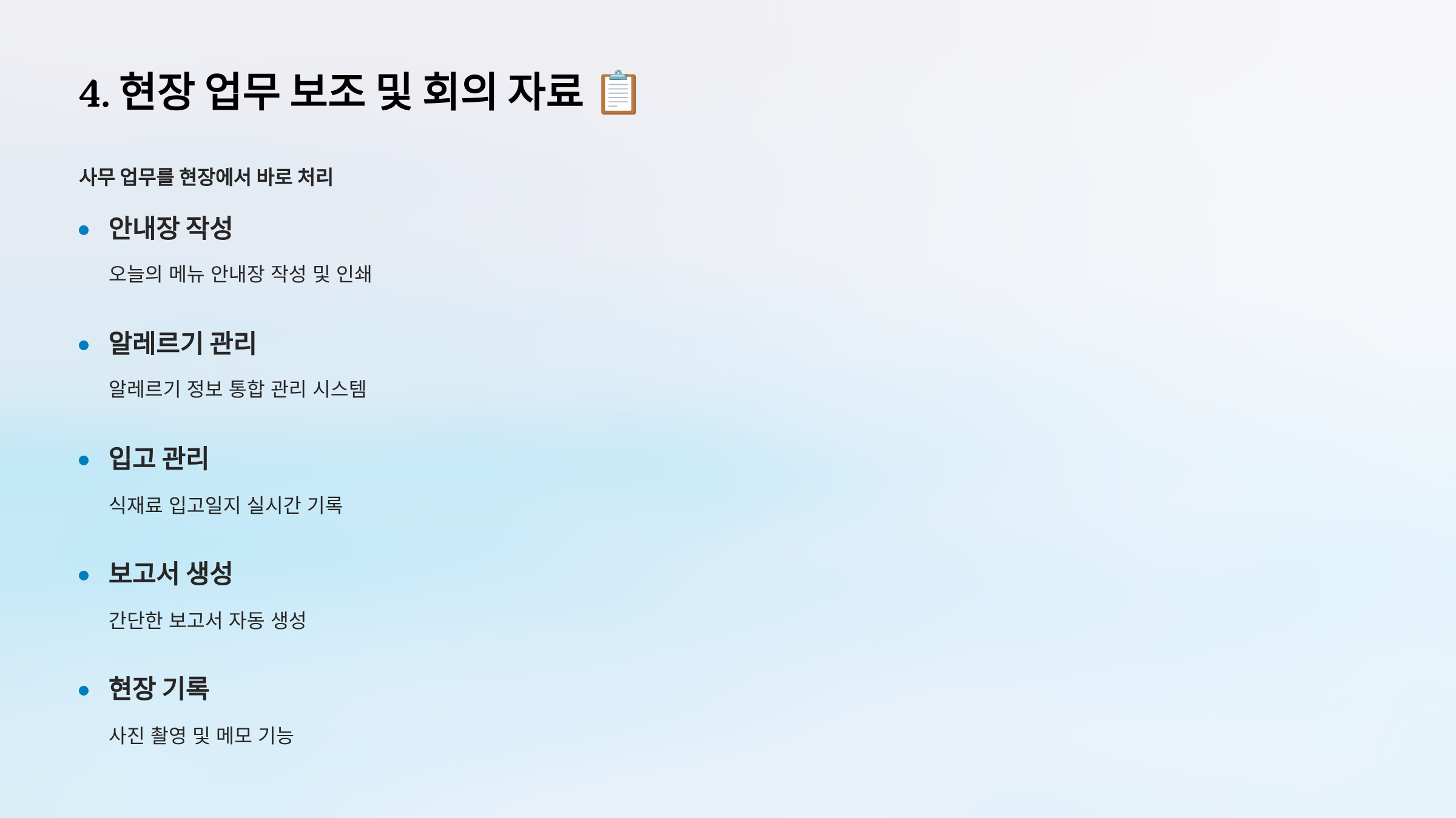 4. 현장 업무 보조 및 회의 자료 📋