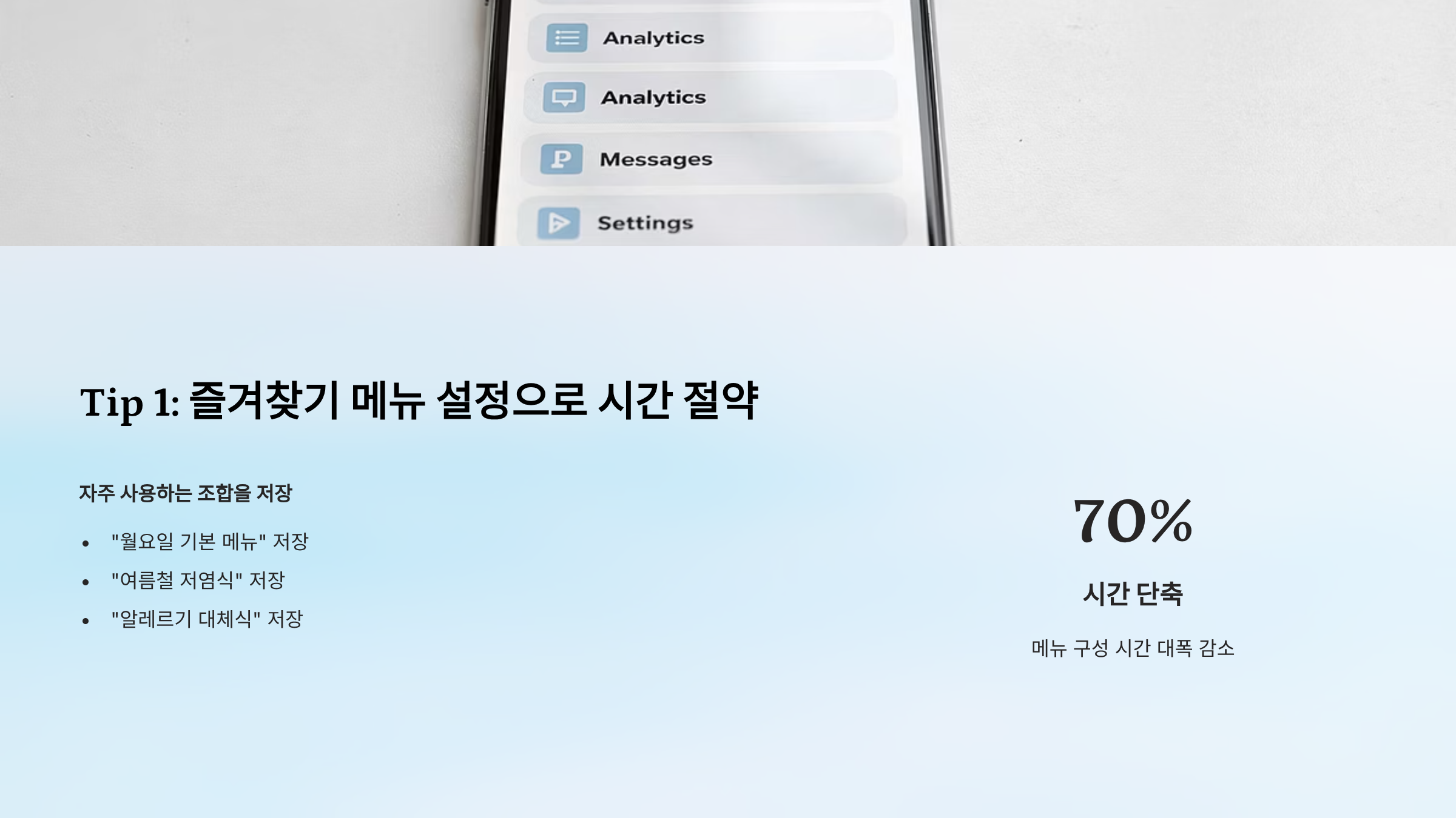 - 메뉴 구성 시간: 2시간 → 20분 (90% 단축)