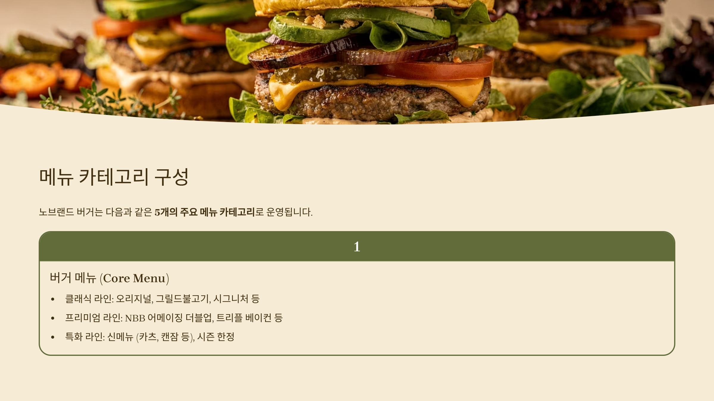노브랜드 버거 메뉴 체계 📋