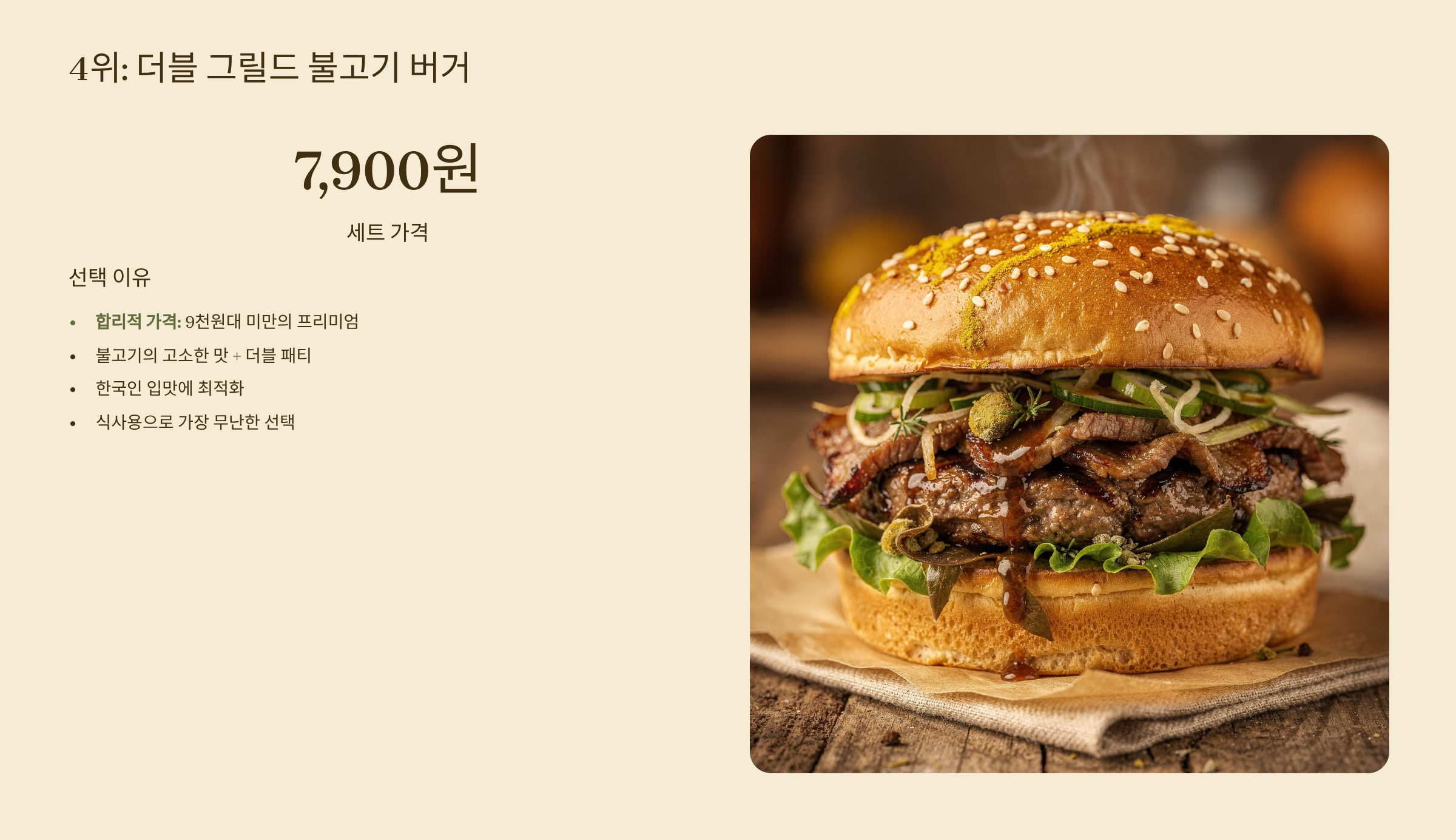4위: 더블 그릴드 불고기 버거 (세트 7,900원)