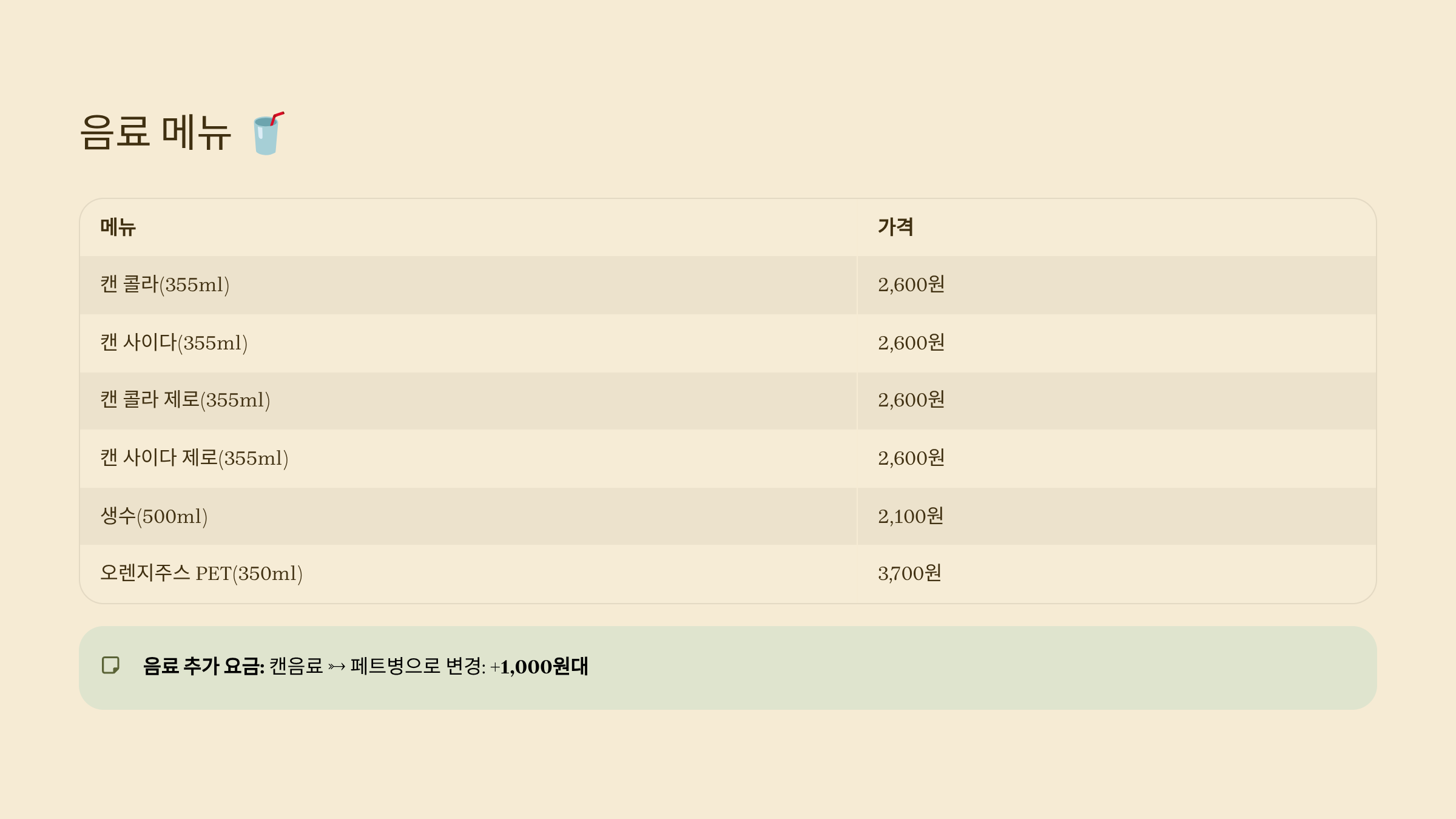 - 음료 업그레이드 옵션 추가 가능