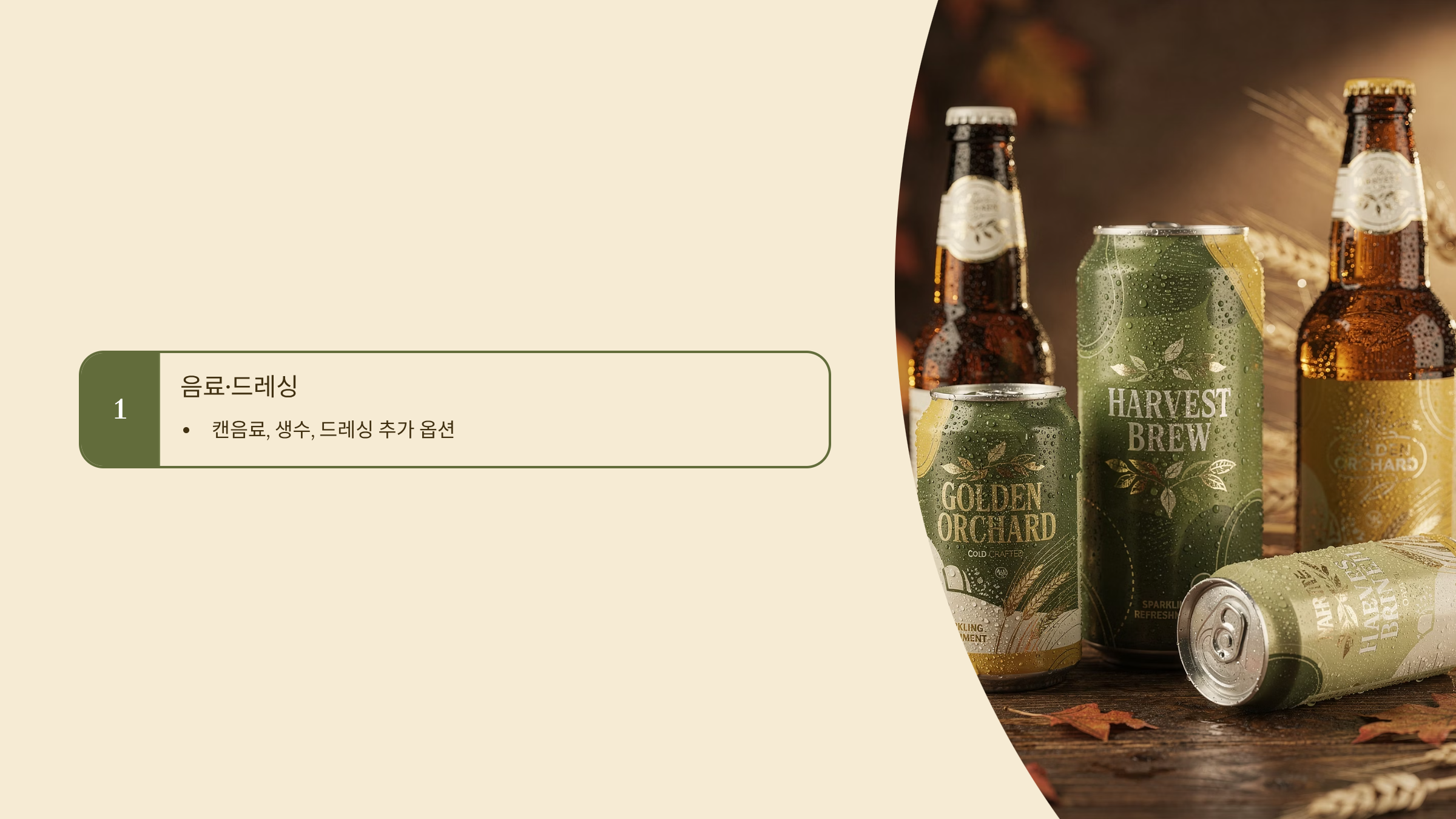 - 캔음료, 생수, 드레싱 추가 옵션