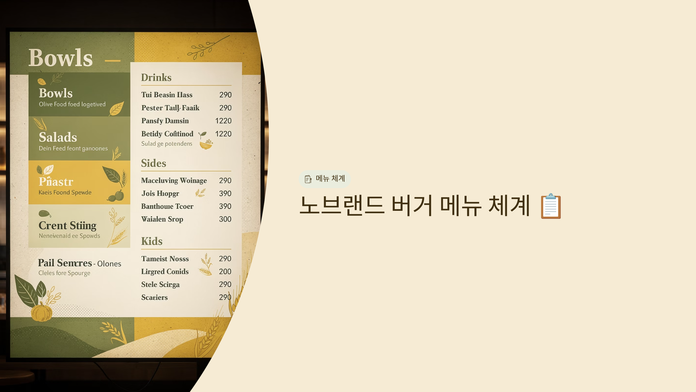 - 사이드: 감자튀김, 어니언링, 인절미 치즈볼 등