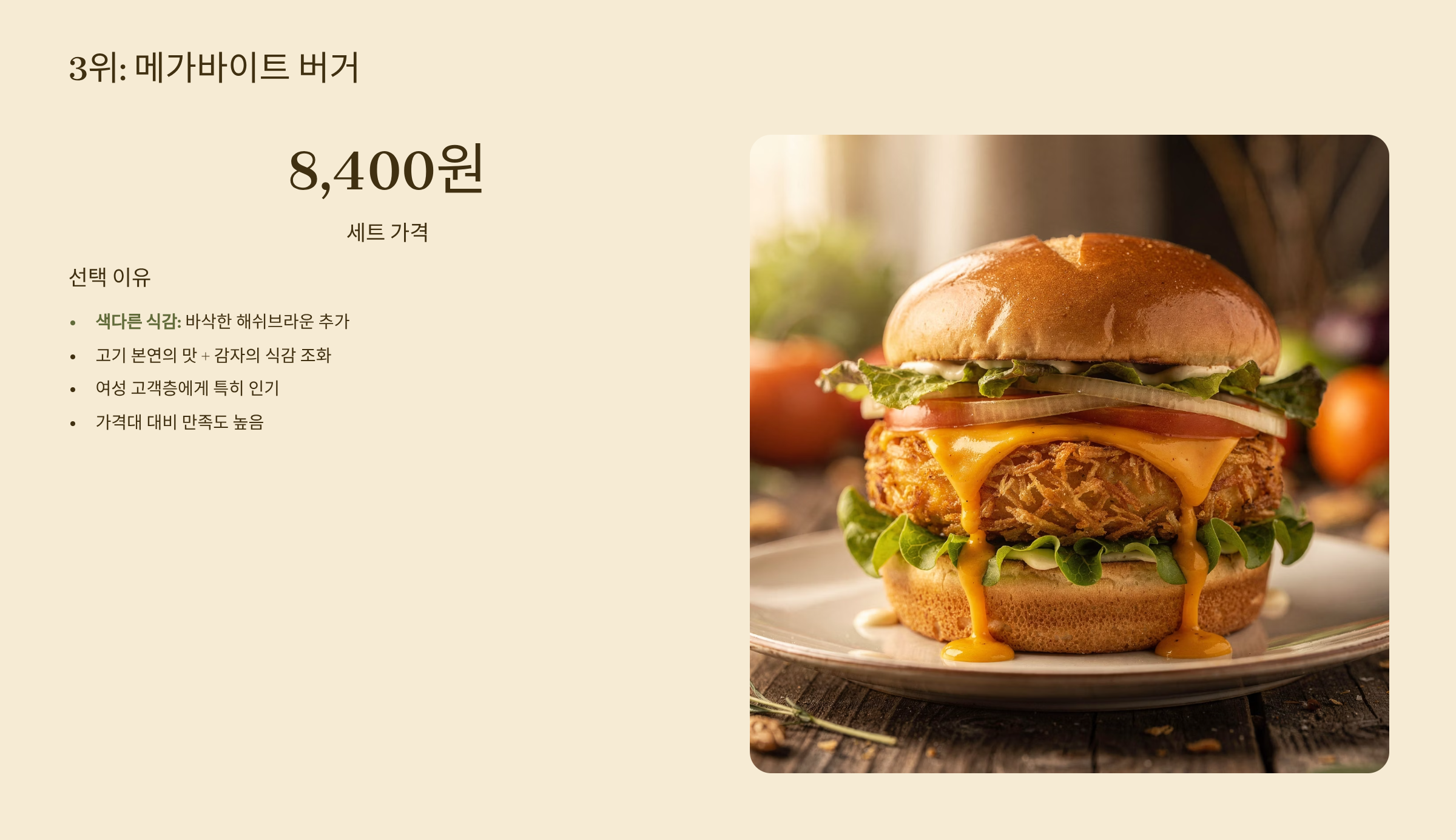 3위: 메가바이트 버거 (세트 8,400원)