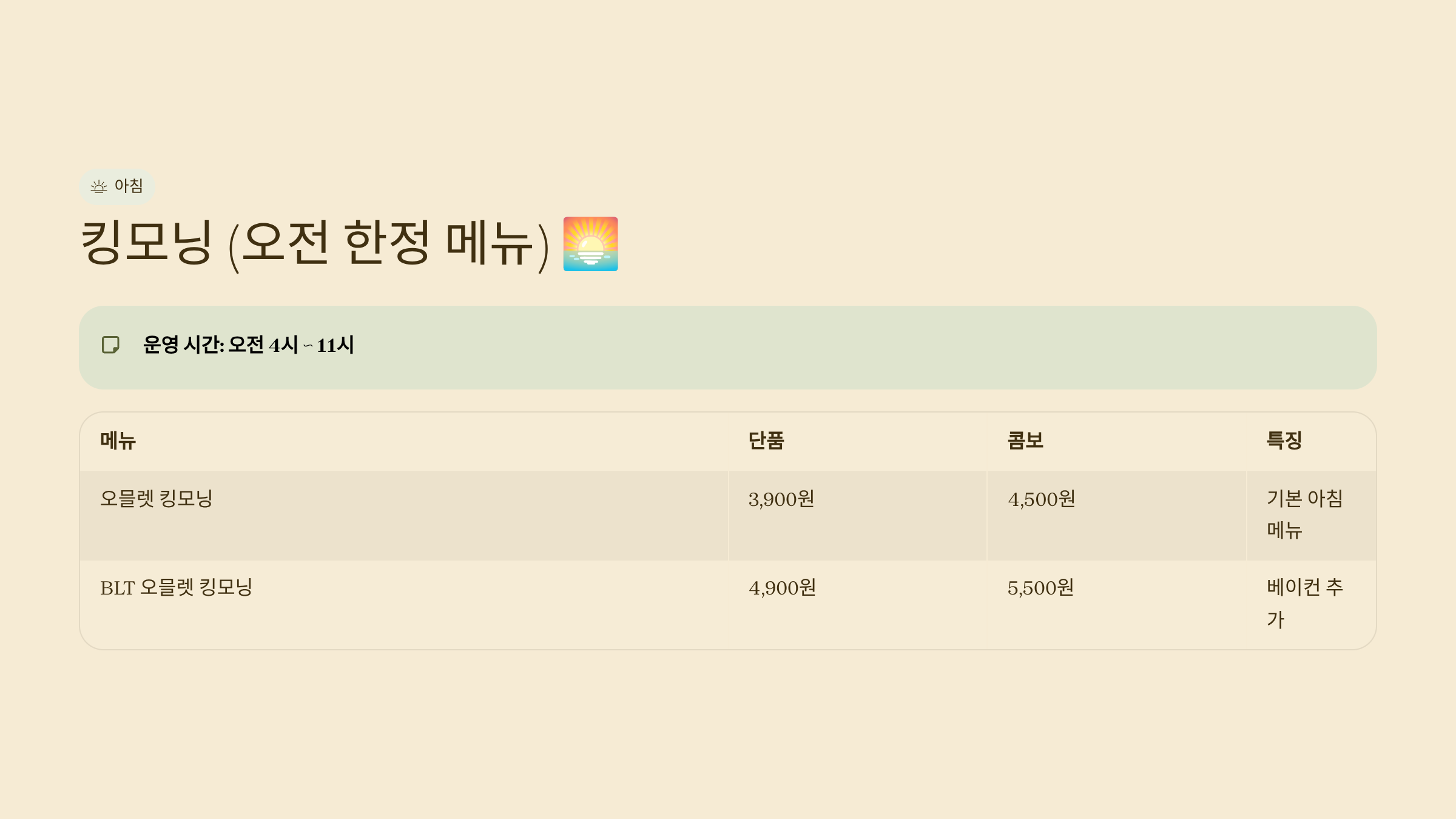 5. 킹모닝 (오전 메뉴, 4시~11시)
