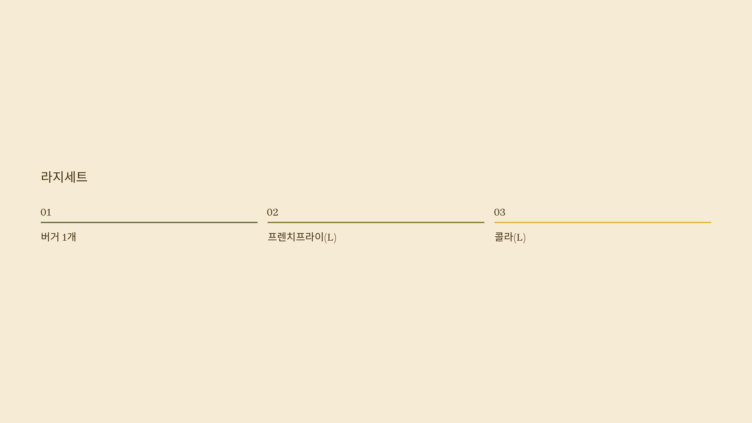 - 라지세트: 와퍼 + 프렌치프라이(L) + 콜라(L)