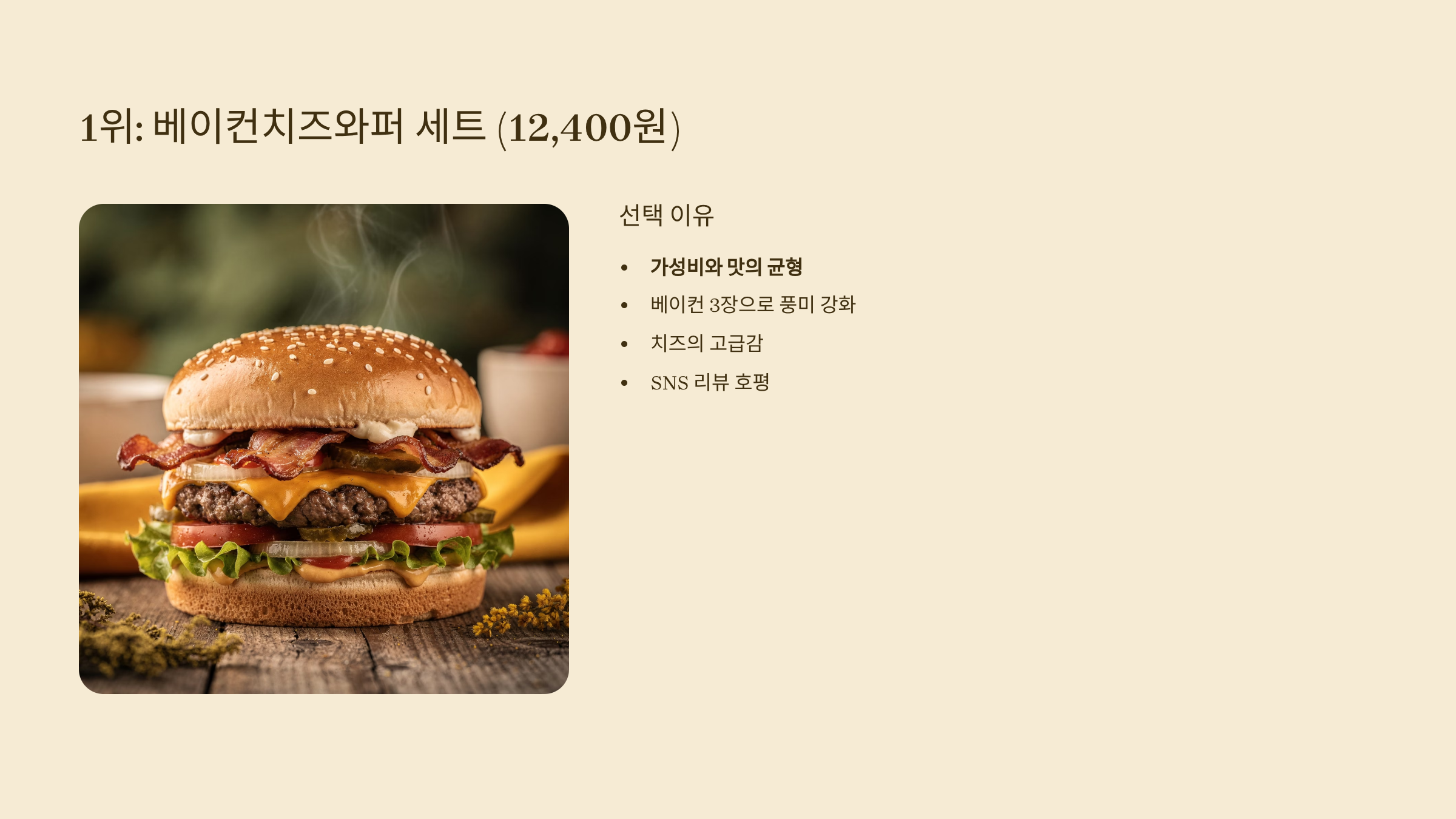 1위: 베이컨치즈와퍼 세트 (12,400원)