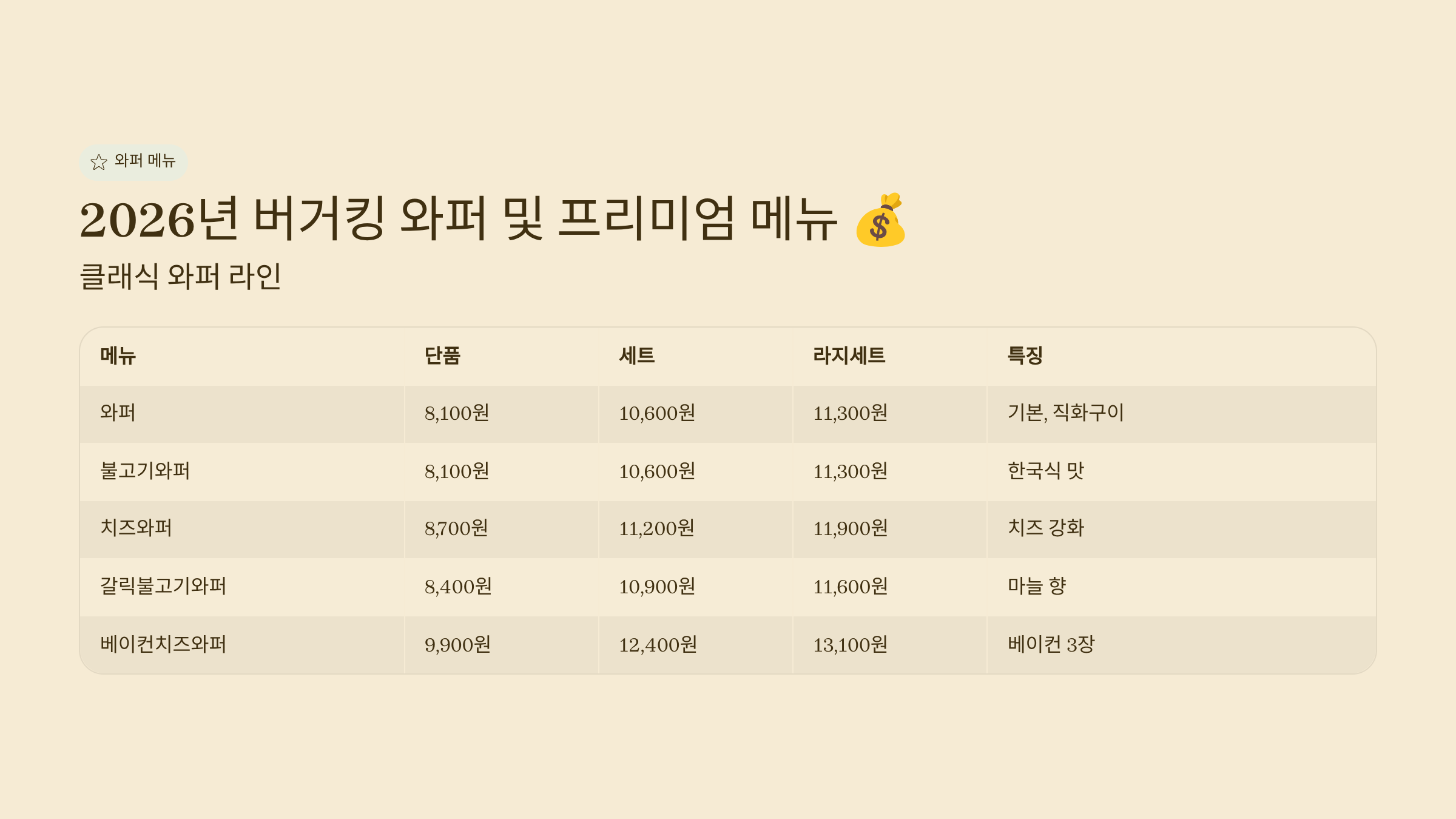 2026년 버거킹 와퍼 및 프리미엄 메뉴 💰