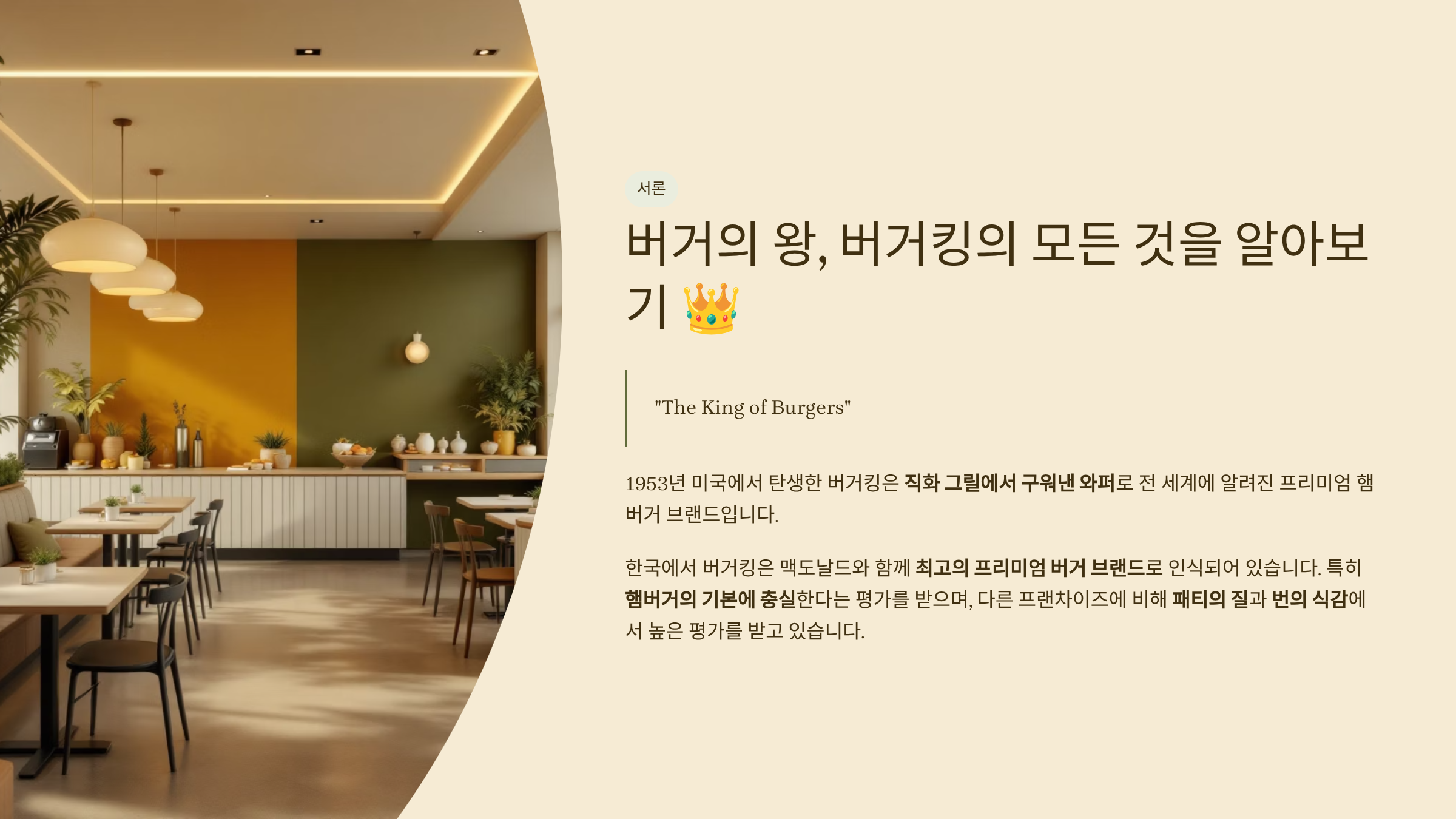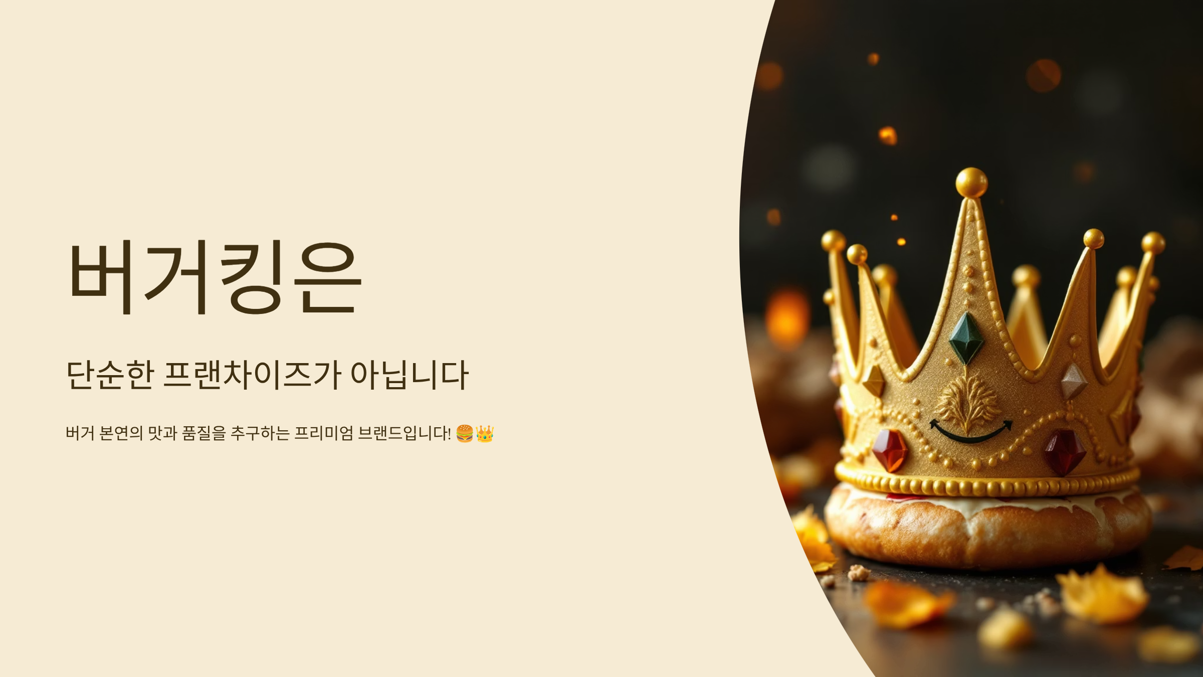 버거킹은 단순한 프랜차이즈가 아닙니다. 버거 본연의 맛과 품질을 추구하는 프리미엄 브랜드입니다! 🍔👑