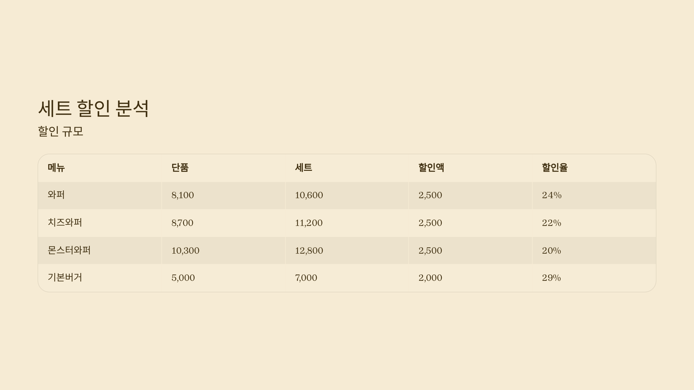 - 세트 가격: 단품 대비 2,500원 할인 (표준 정책)