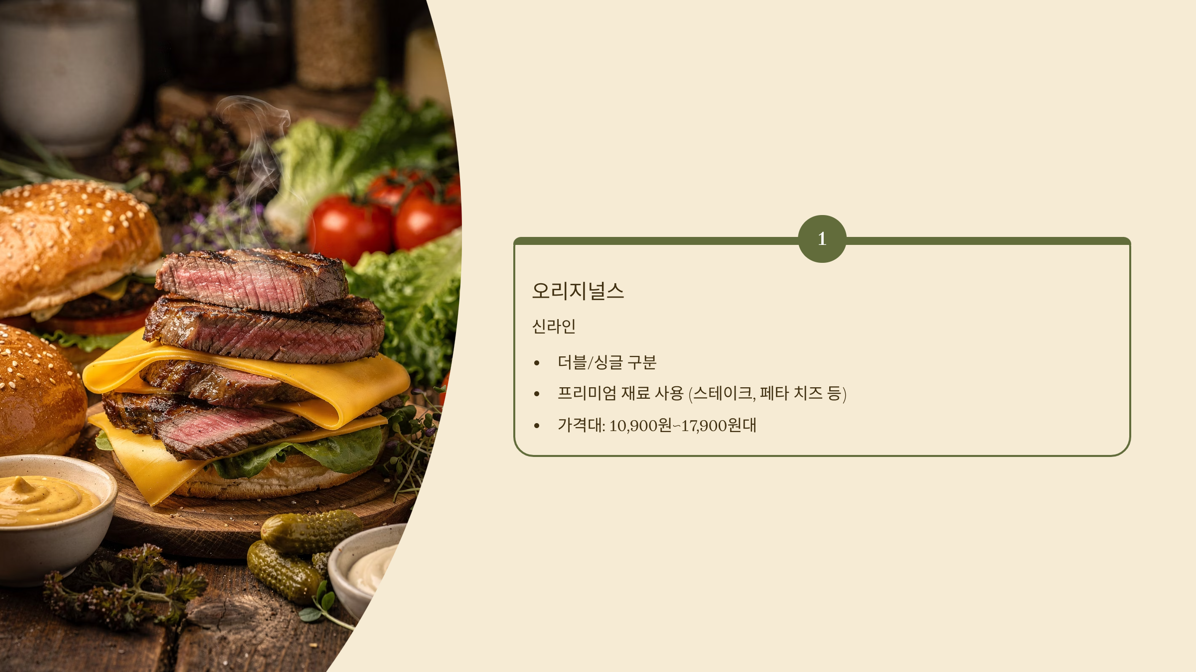 - 프리미엄 재료 사용 (스테이크, 페타 치즈 등)