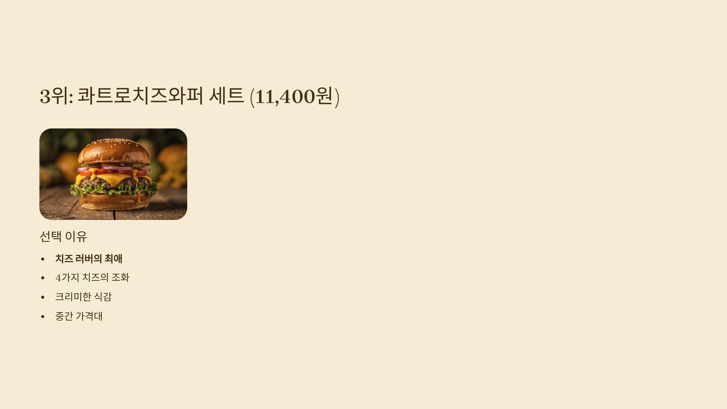 3위: 콰트로치즈와퍼 세트 (11,400원)