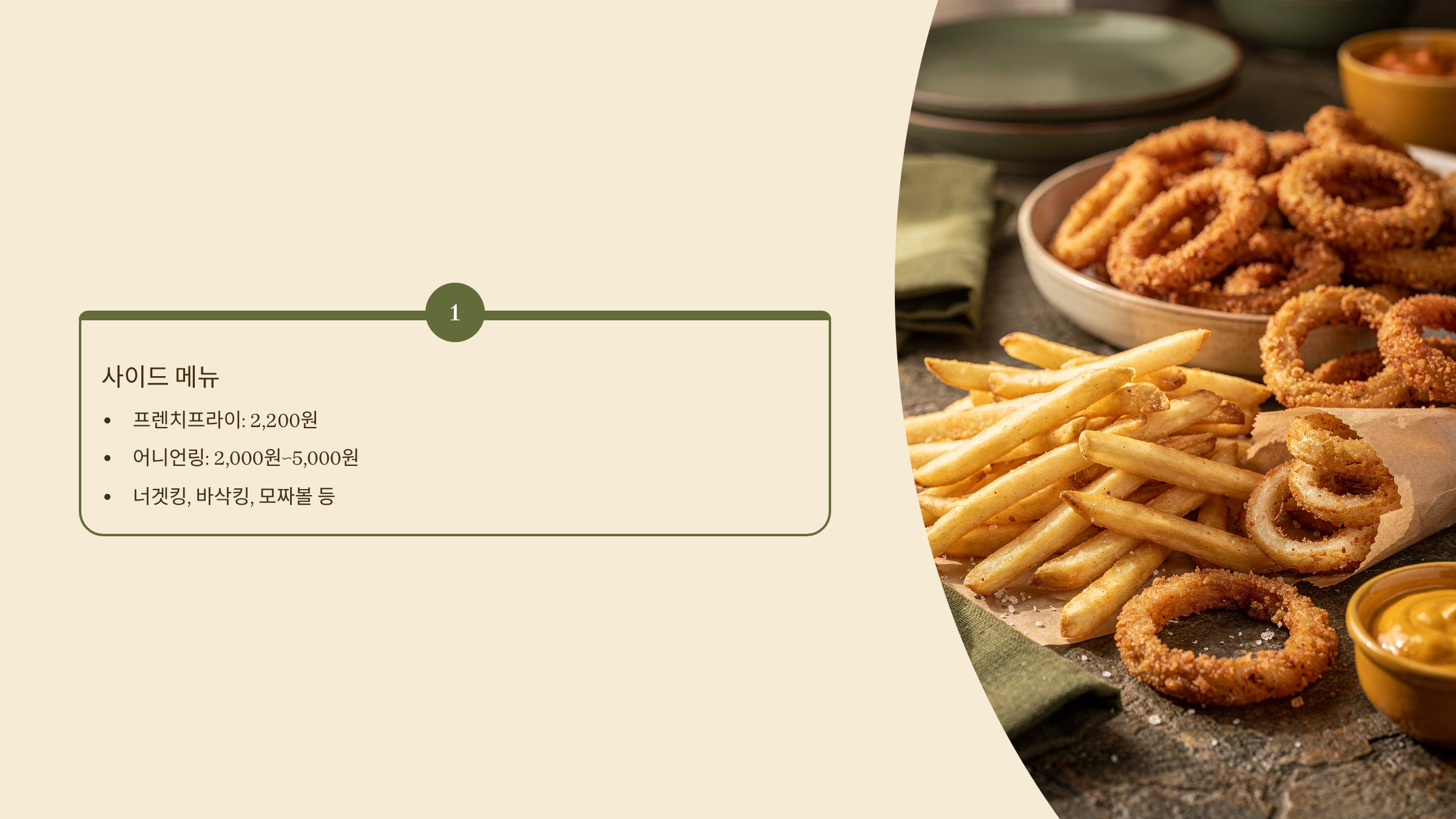 | 치킨킹 | 7,500원 | 10,000원 | 프리미엄 치킨 |