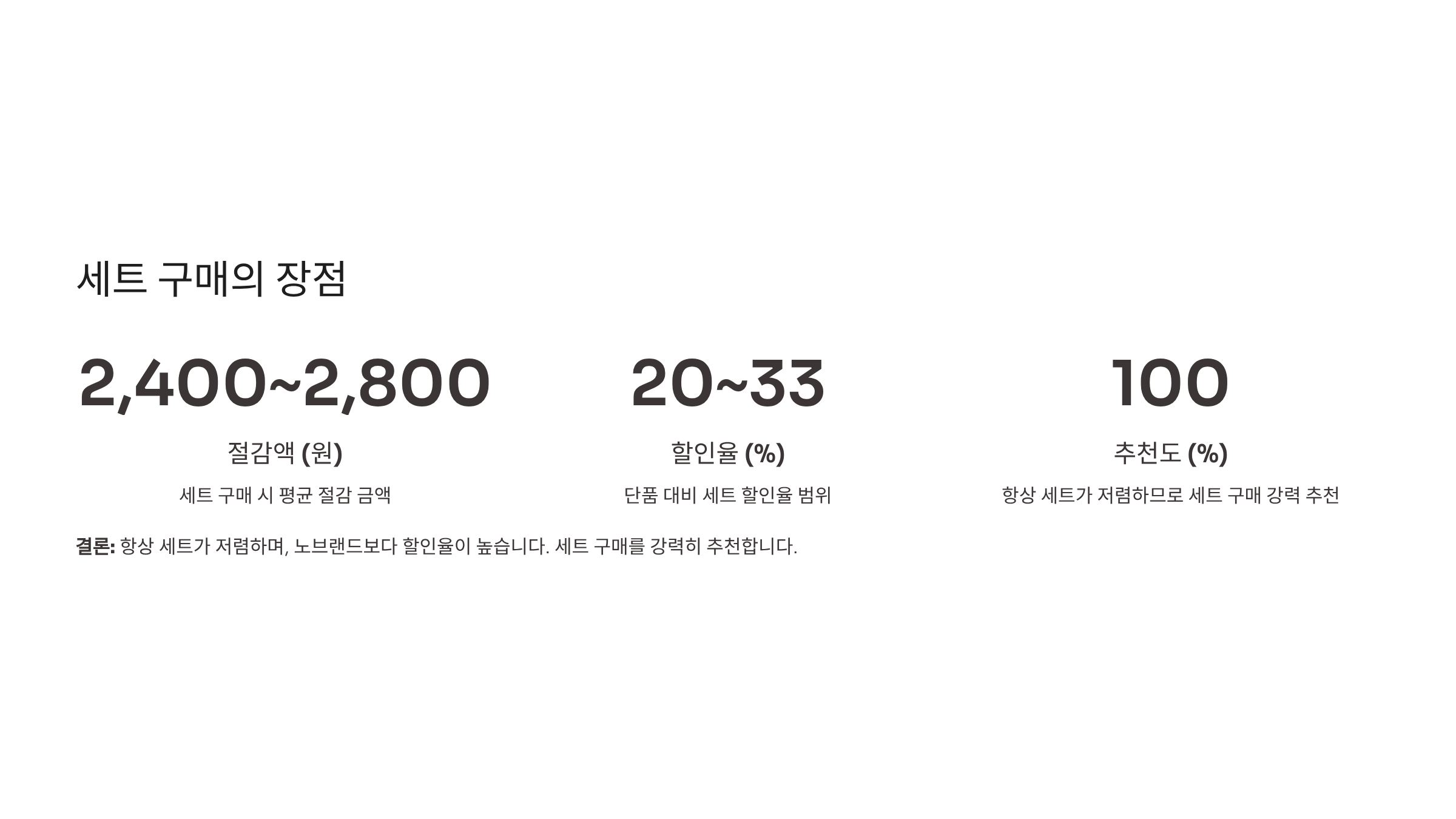 - 평균 세트 가격: 2,000~2,200원 할인 (표준)