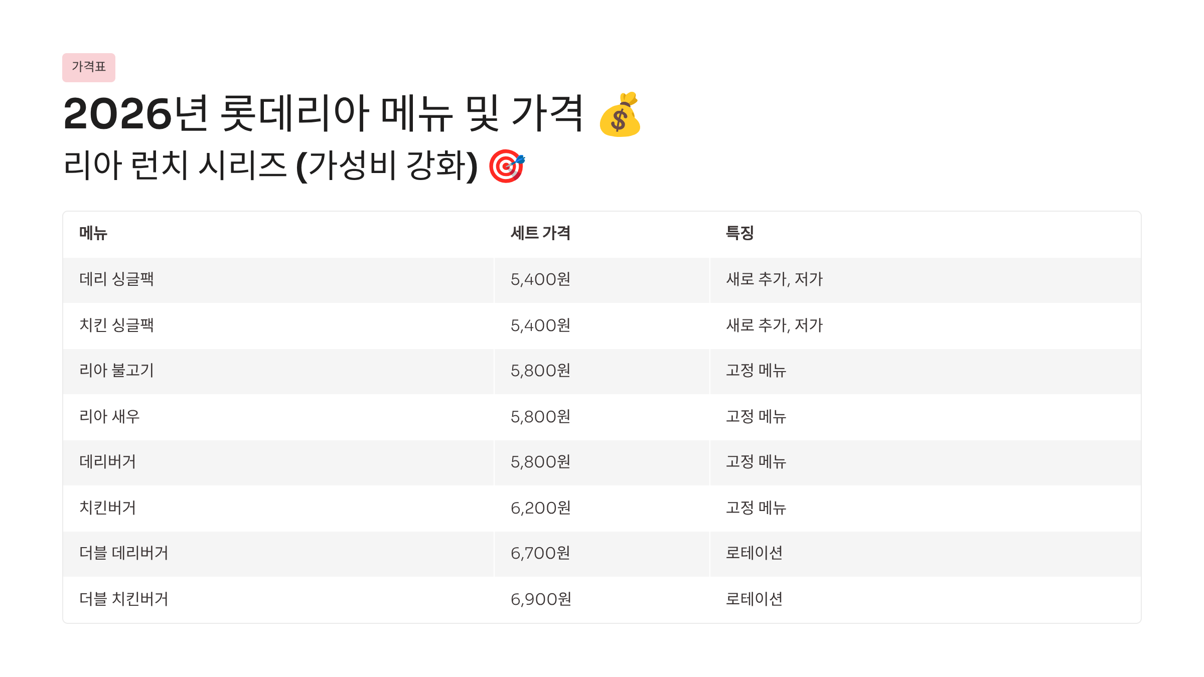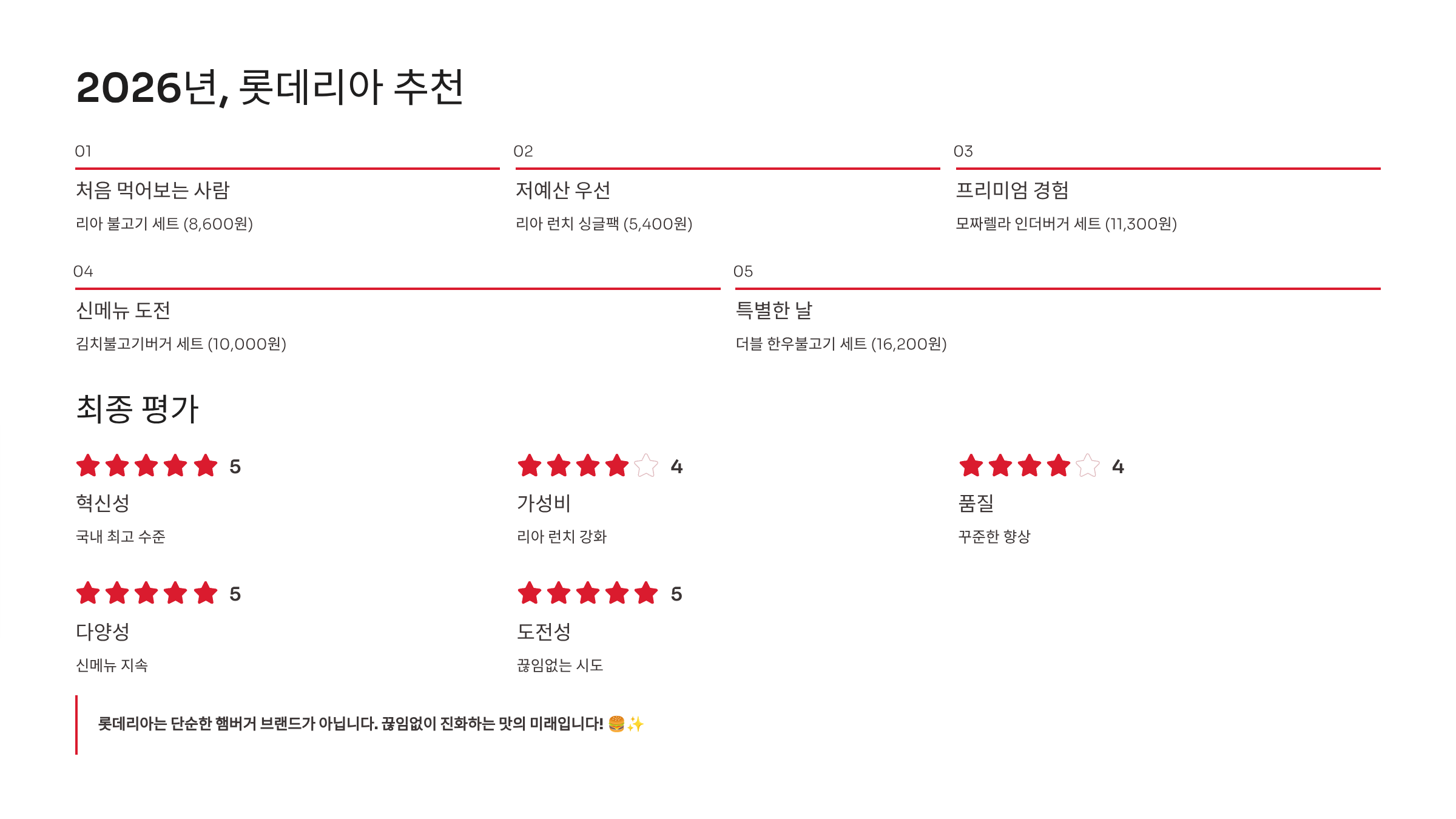 2026년 롯데리아는 가성비와 혁신의 균형을 추구합니다.