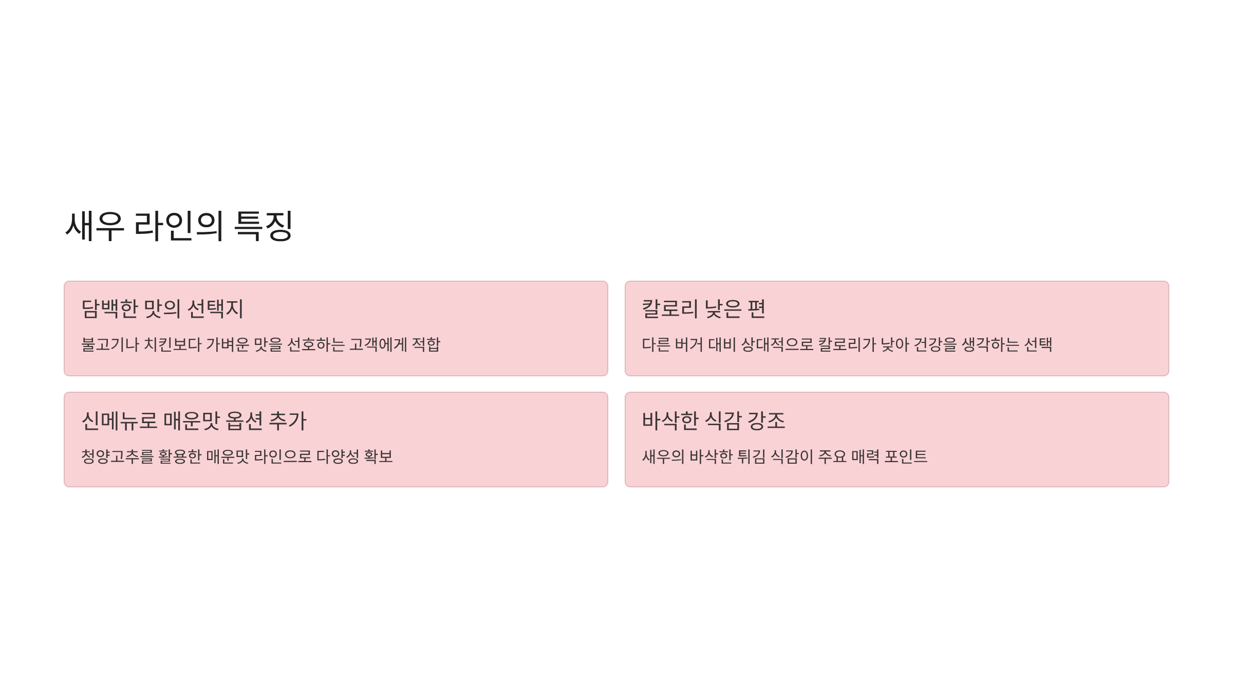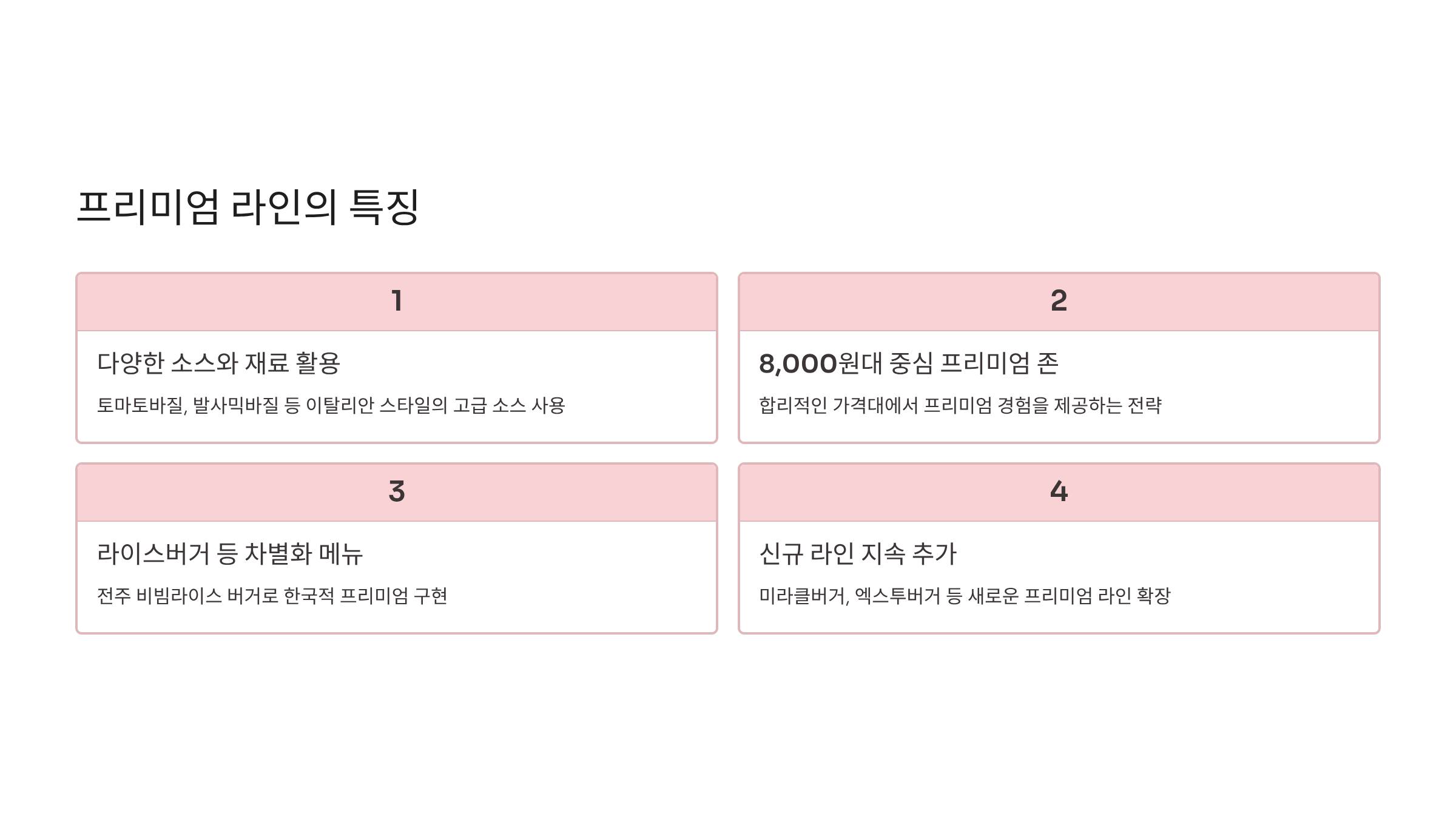 - 계절성: 봄·여름·가을·겨울 시즌 메뉴