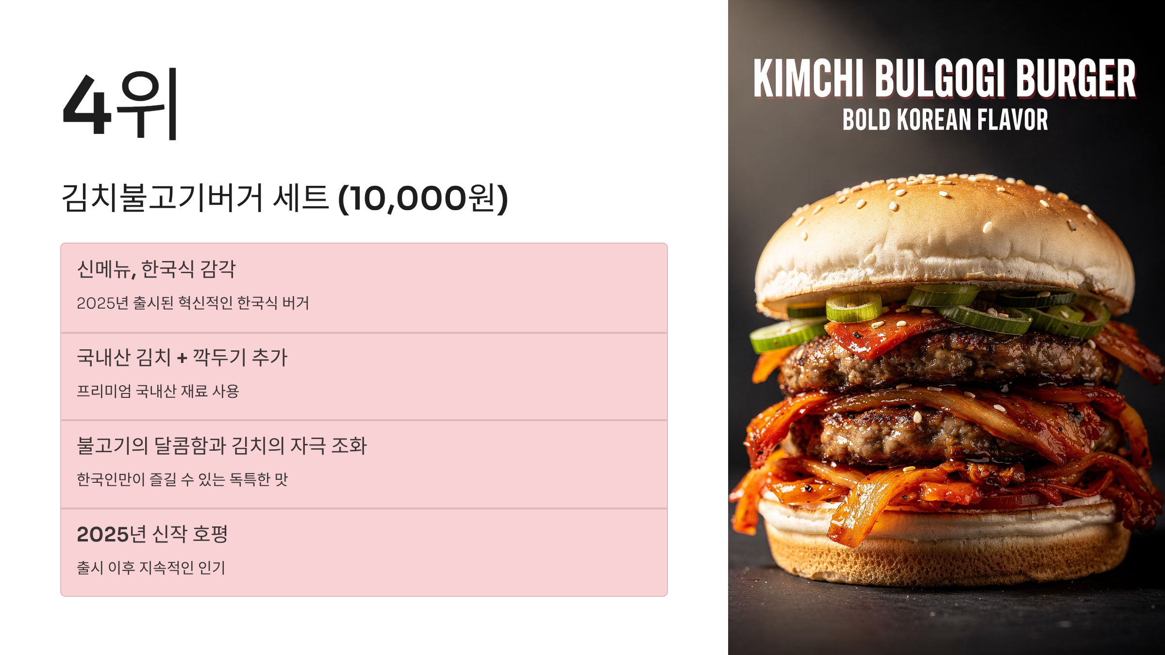 4️⃣ 신메뉴 도전: 김치불고기버거 세트 (10,000원)
