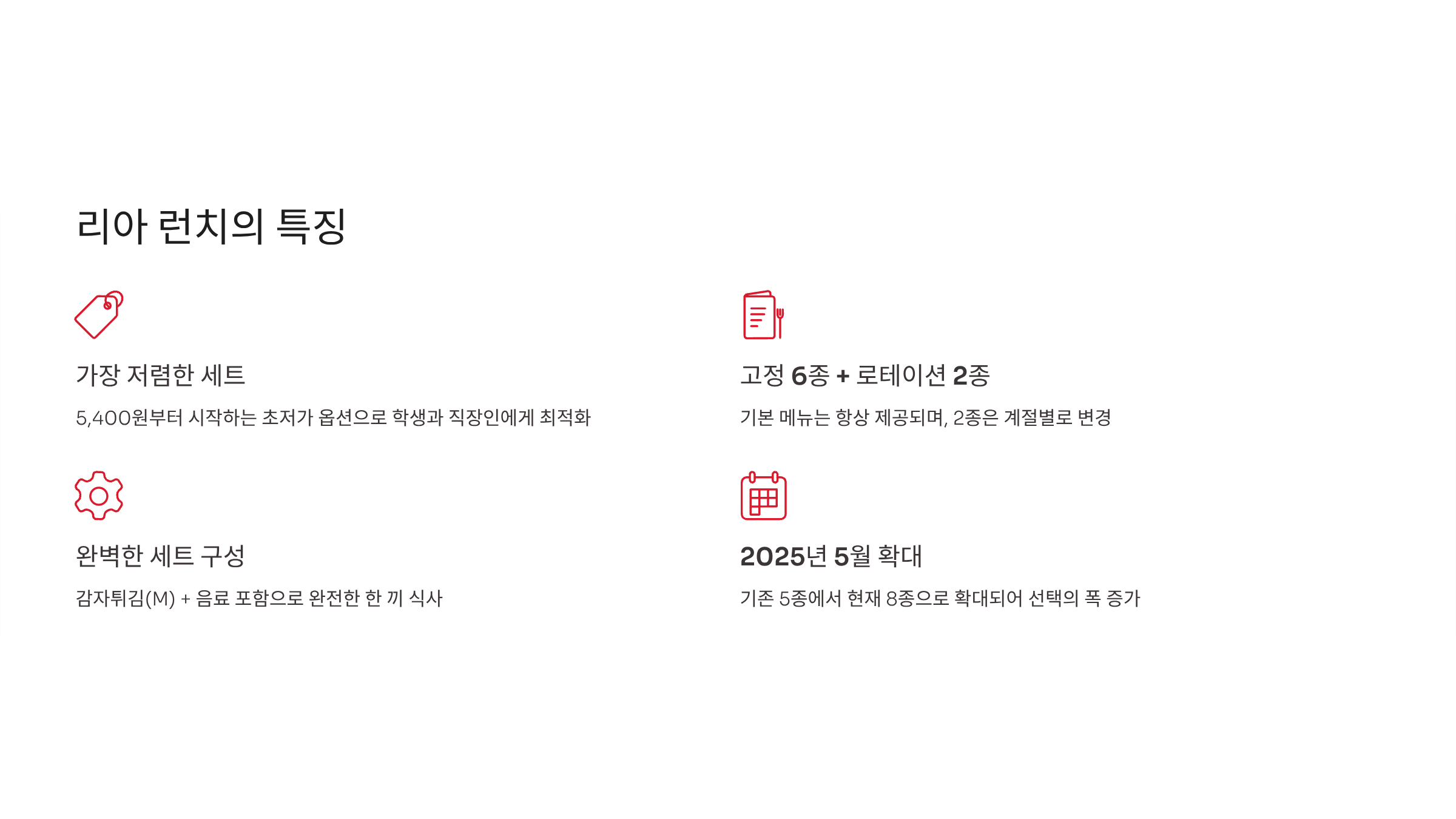 - 리아 런치 시리즈: 5,400원~6,900원대 (강화된 가성비)