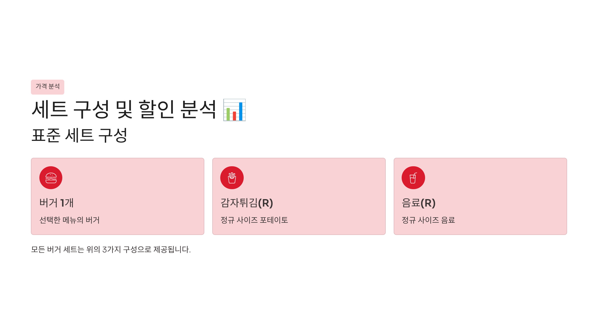 - 세트에 감자튀김(M) + 음료 포함