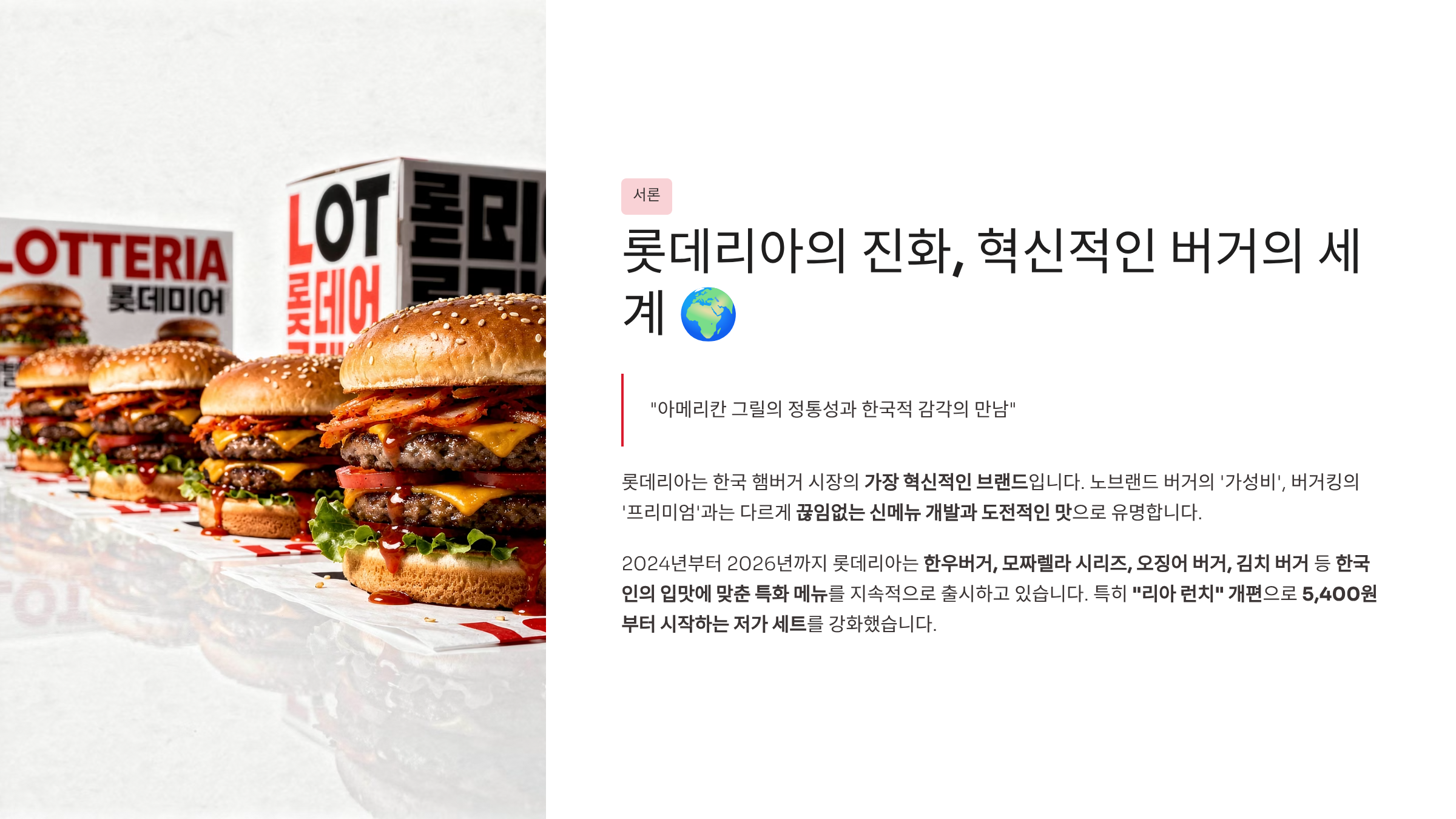롯데리아는 단순한 햄버거 브랜드가 아닙니다. 끊임없이 진화하는 맛의 미래입니다! 🍔✨