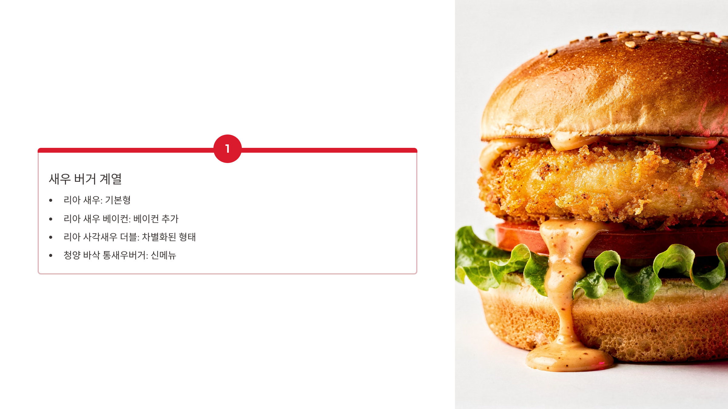 - 청양 바삭 통새우버거 (2025년): 통새우 + 매운맛