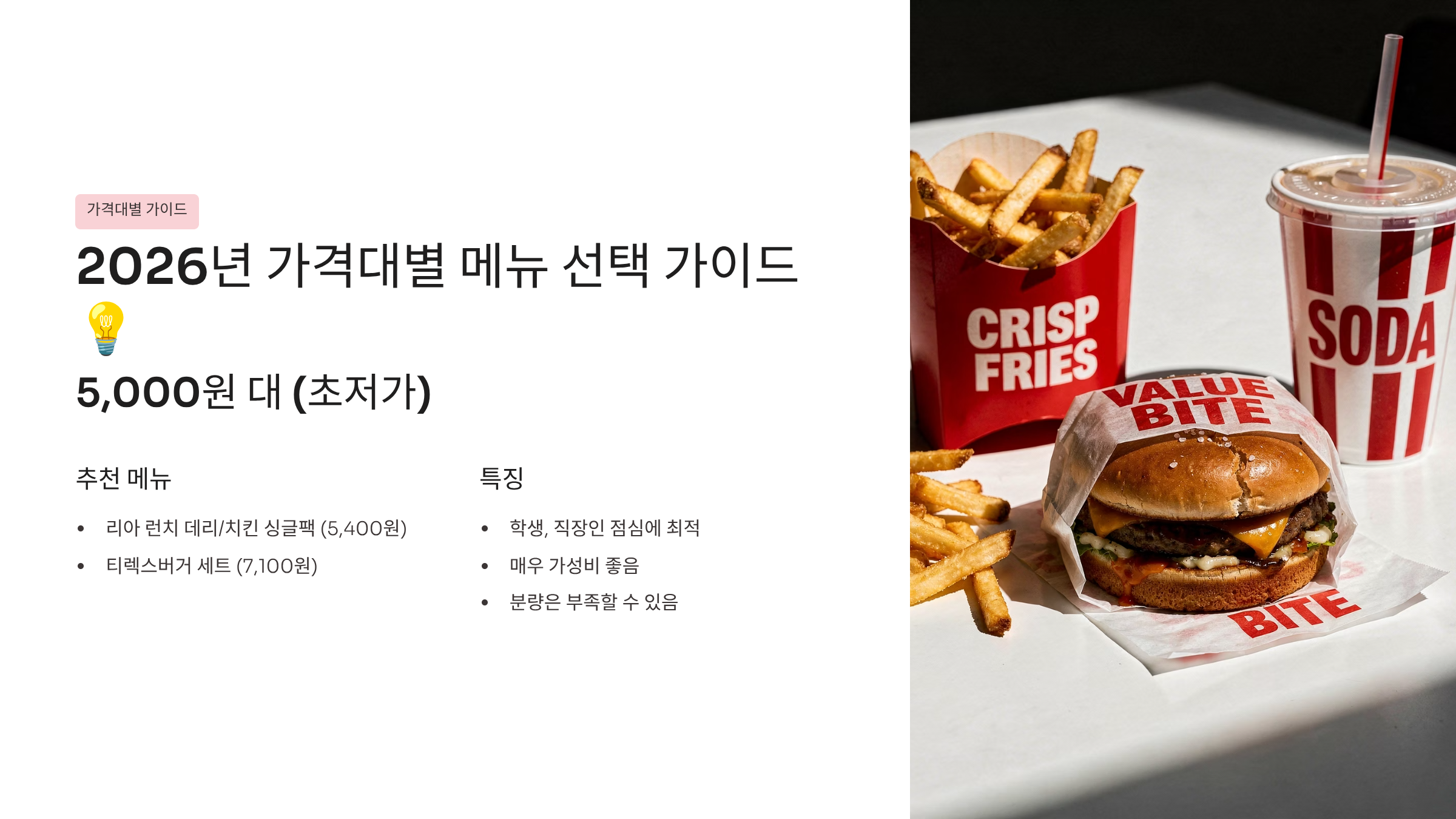 2026년 가격대별 메뉴 선택 가이드 💡