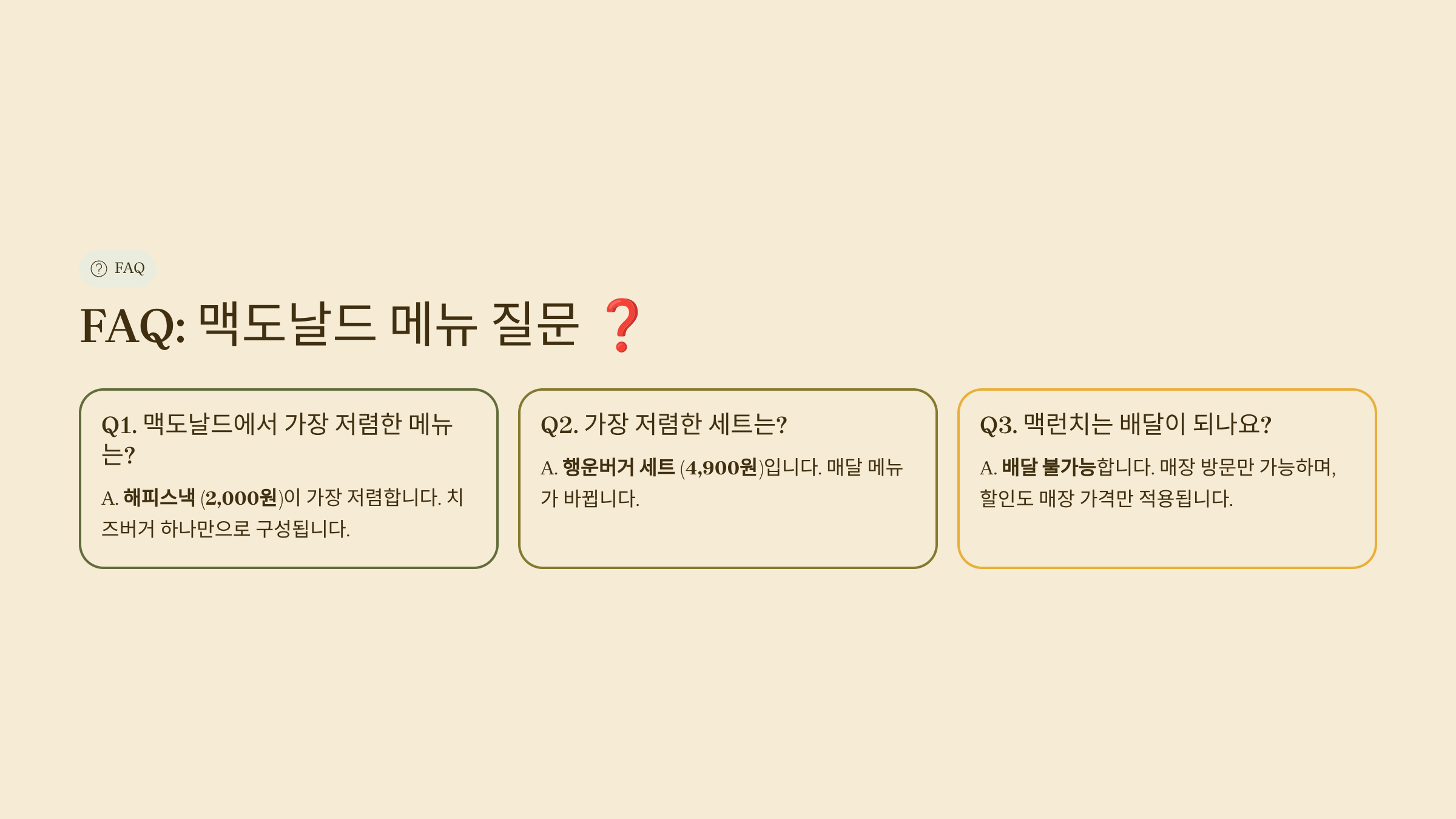 - 최저가 옵션: 에그 맥머핀 3,000원