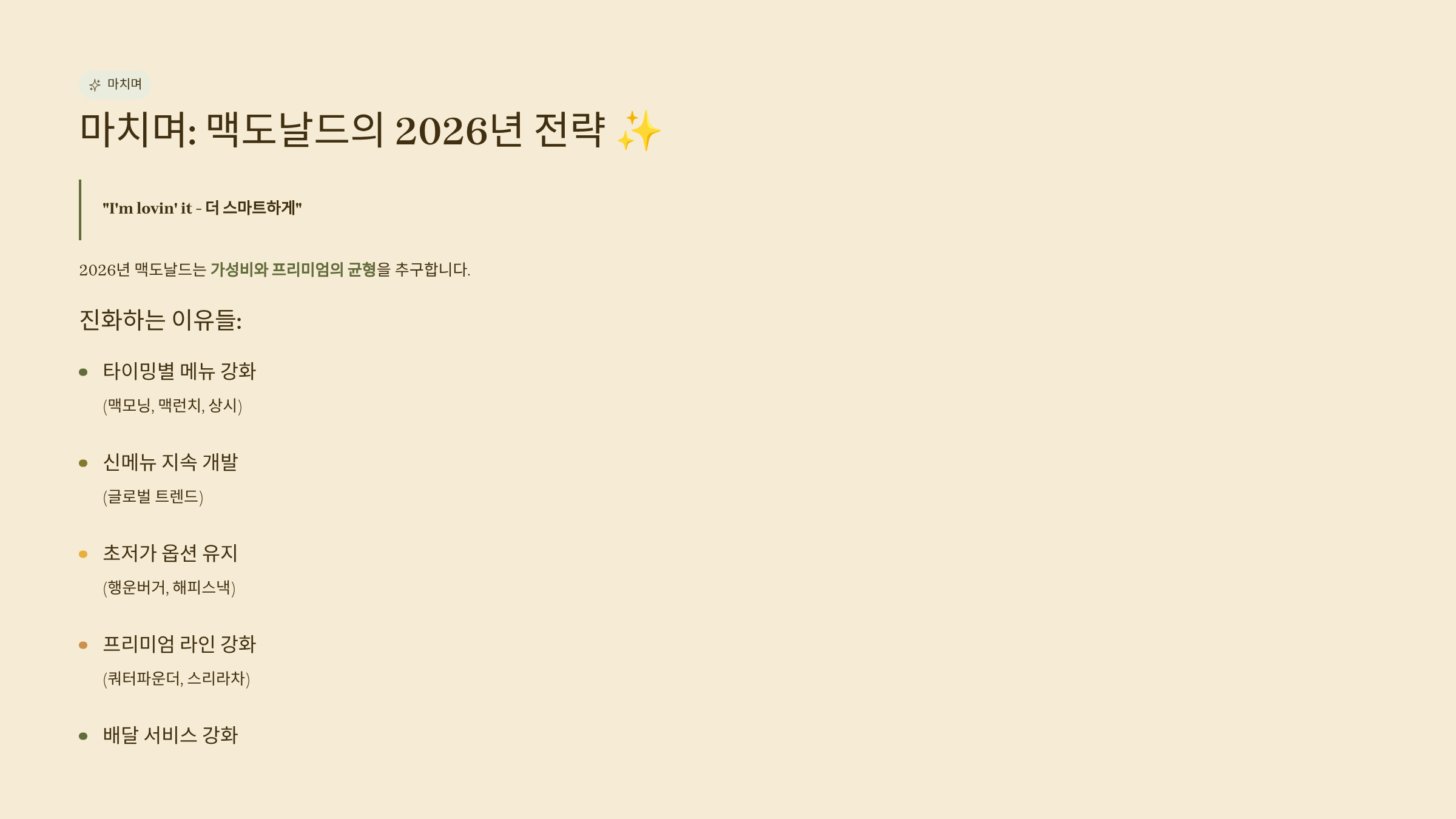 2026년 맥도날드는 가성비와 프리미엄의 균형을 추구합니다.
