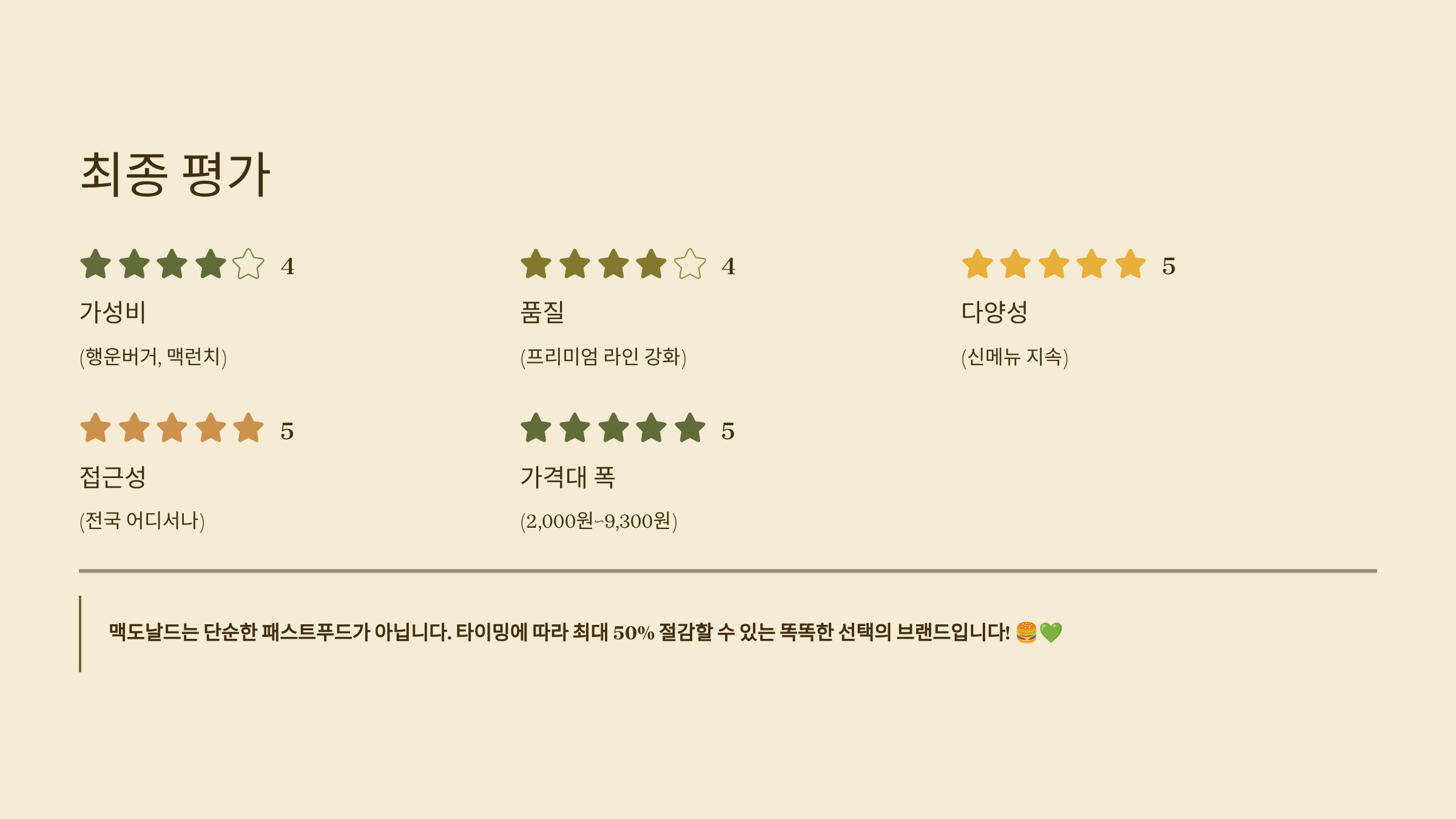 맥도날드는 단순한 패스트푸드가 아닙니다. 타이밍에 따라 최대 50% 절감할 수 있는 똑똑한 선택의 브랜드입니다! 🍔💚