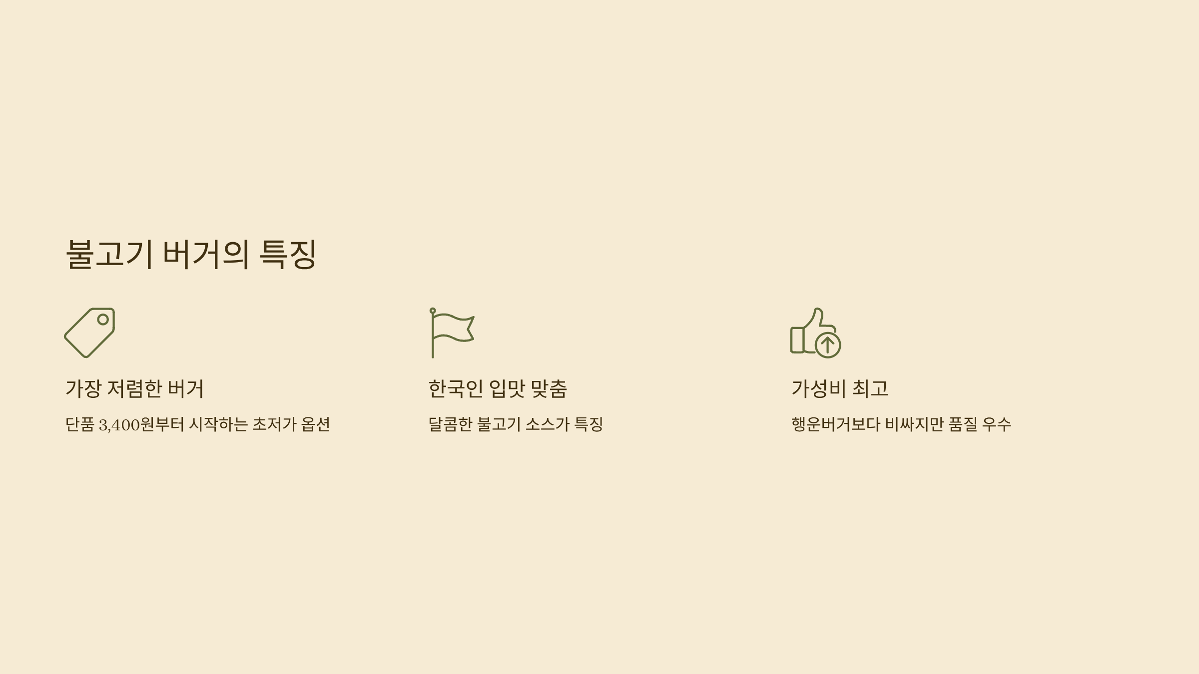 | 불고기버거 | 3,400 | 5,300 | 1,900 | 36% |