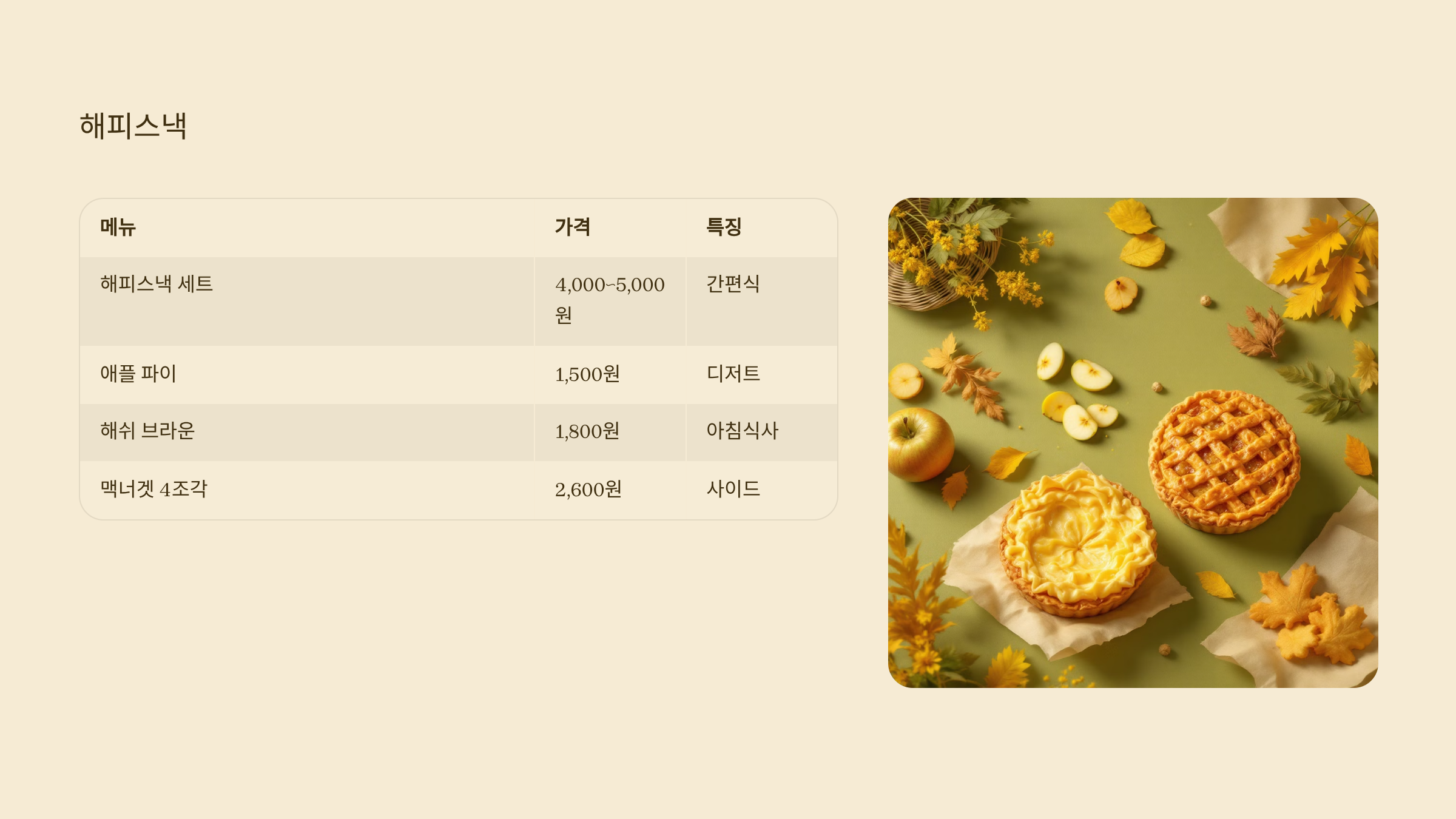 | 해피스낵 세트 | 4,000~5,000원 | 간편식 |
