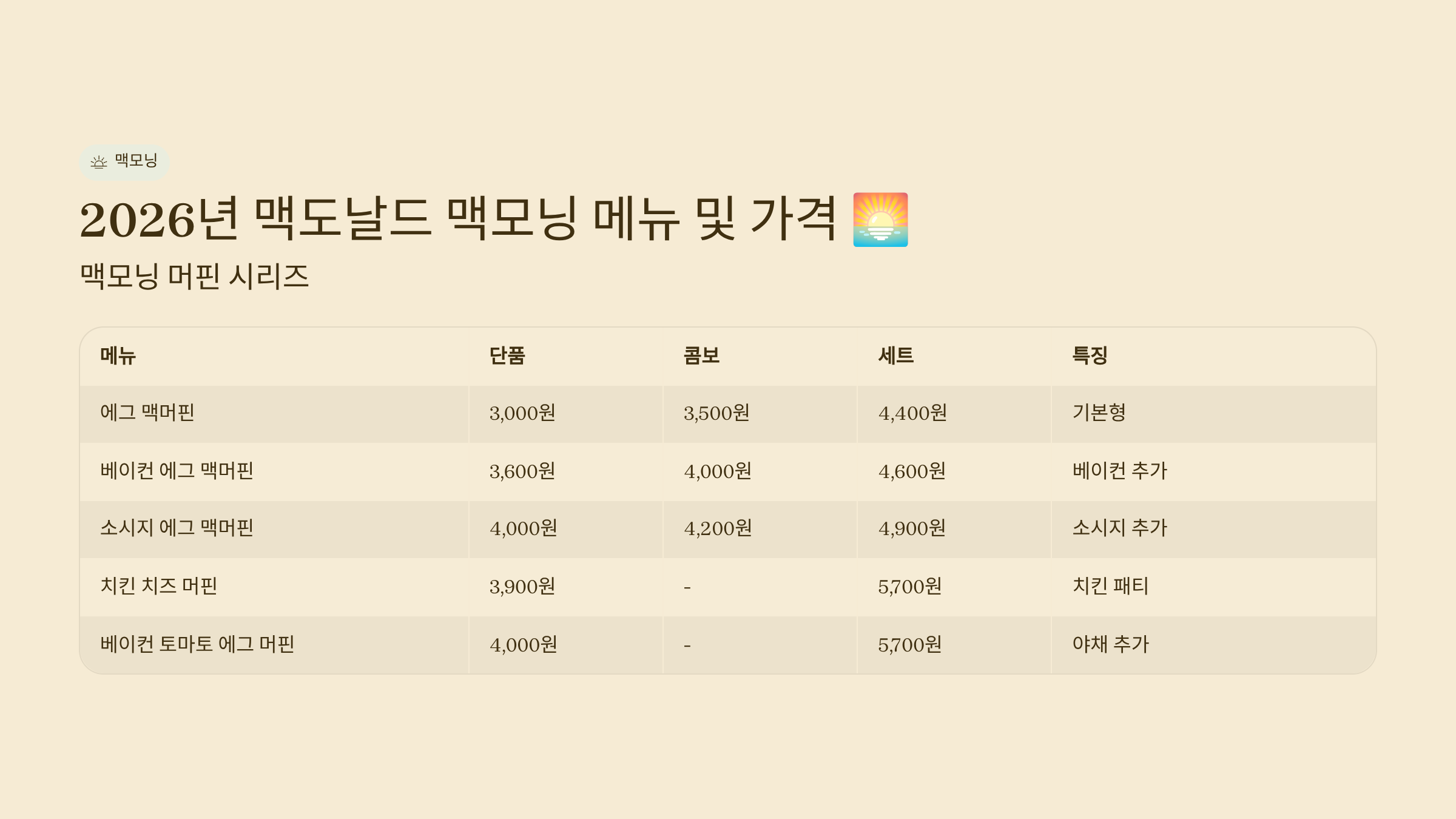 2026년 맥도날드 맥모닝 메뉴 및 가격 🌅