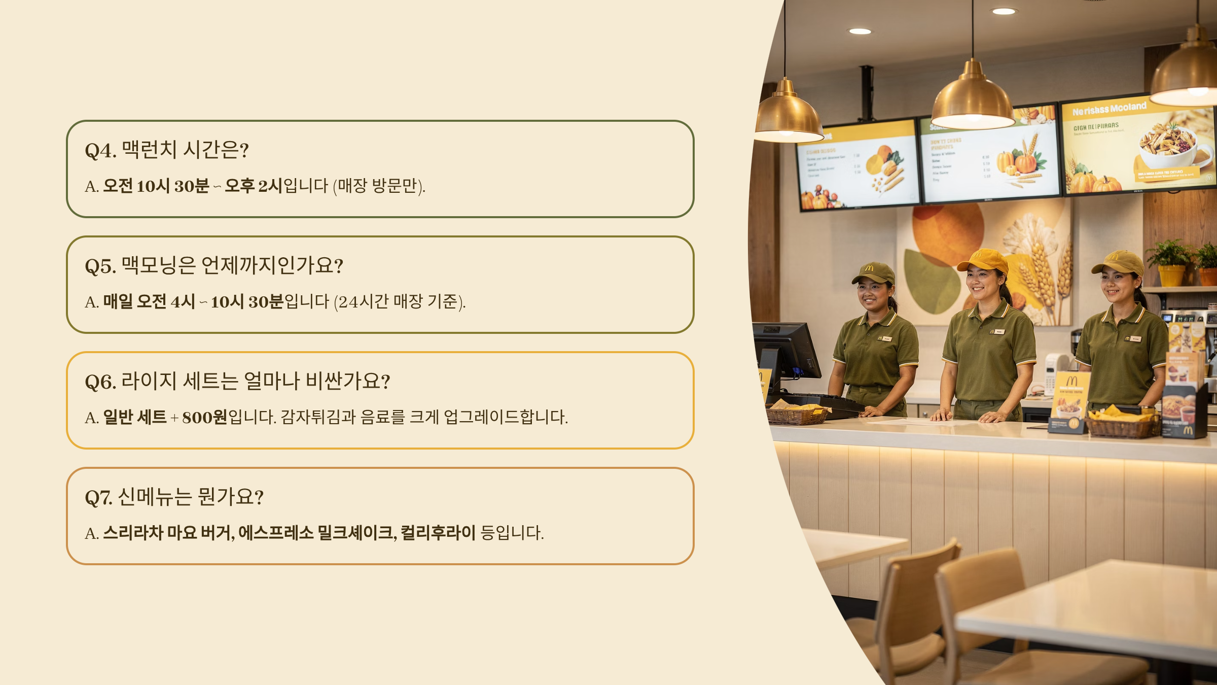 ✅ 타이밍별 메뉴 강화 (맥모닝, 맥런치, 상시)