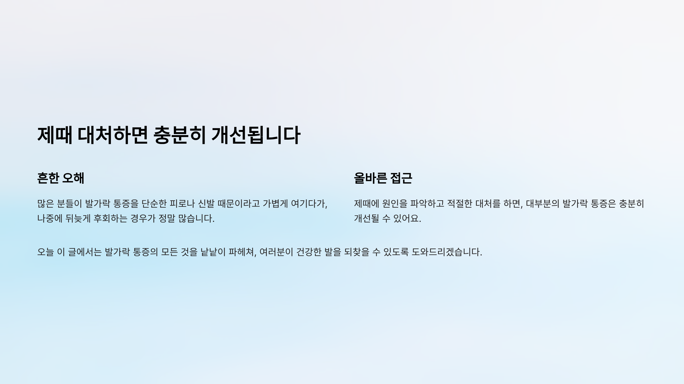 많은 분들이 발가락 통증을 단순한 피로나 신발 때문이라고 가볍게 여기다가, 나중에 뒤늦게 후회하는 경우가 정말 많습니다. 하지만 제때에 원인을 파악하고 적절한 대처를 하면, 대부분의 발가락 통증은 충분히 개선될 수 있어요. 오늘 이 글에서는 발가락 통증의 모든 것을 낱낱이 파헤쳐, 여러분이 건강한 발을 되찾을 수 있도록 도와드리겠습니다.