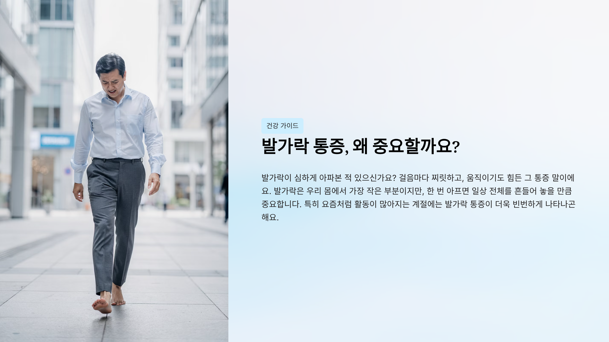발가락이 심하게 아파본 적 있으신가요? 걸음마다 찌릿하고, 움직이기도 힘든 그 통증 말이에요. 발가락은 우리 몸에서 가장 작은 부분이지만, 한 번 아프면 일상 전체를 흔들어 놓을 만큼 중요합니다. 특히 요즘처럼 활동이 많아지는 계절에는 발가락 통증이 더욱 빈번하게 나타나곤 해요.