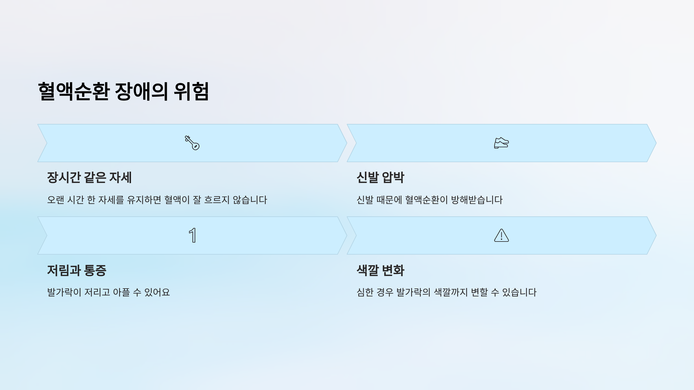 | 순환 장애 | 압박으로 인한 혈류 차단 | 저림, 색변화 |